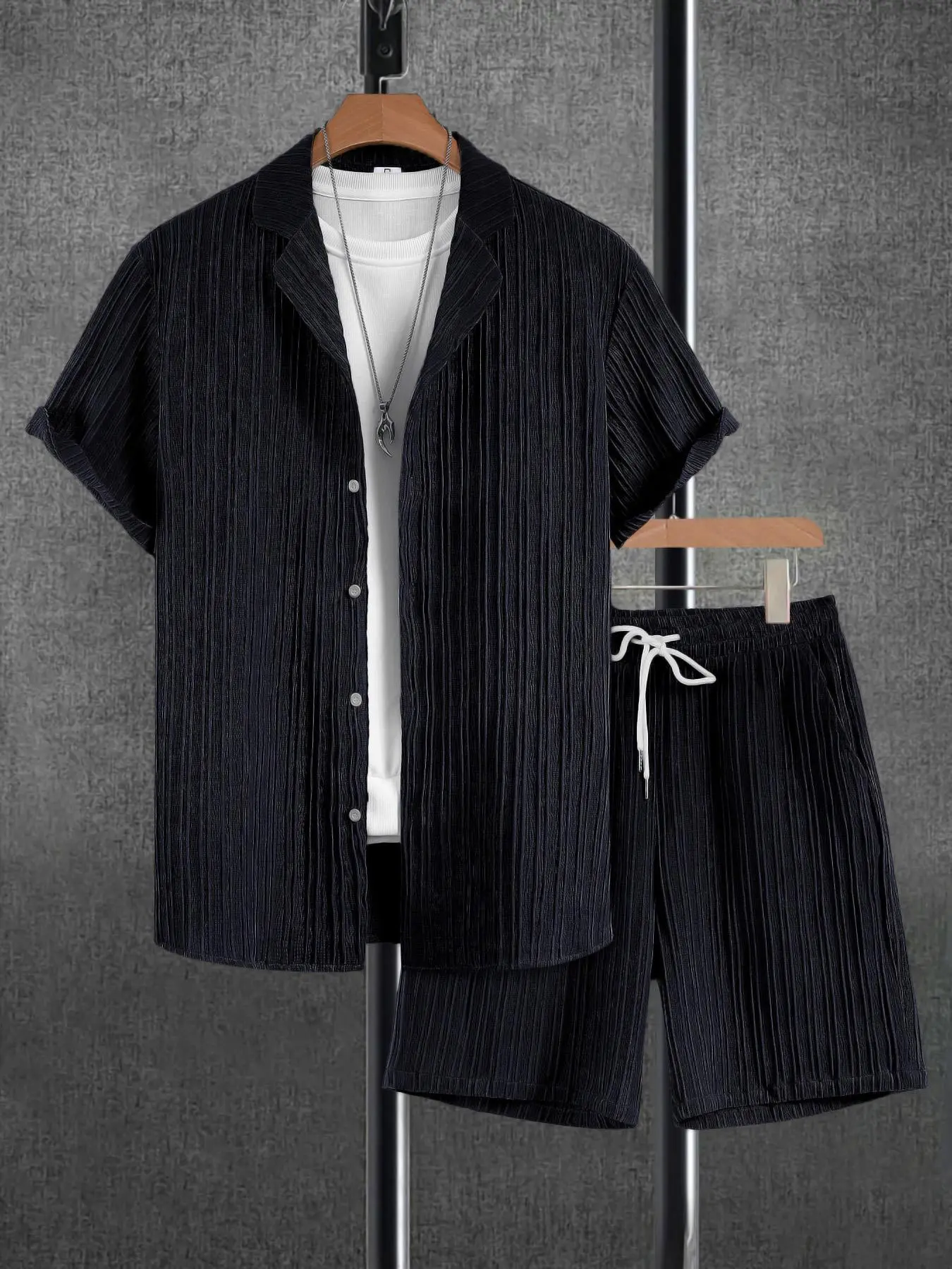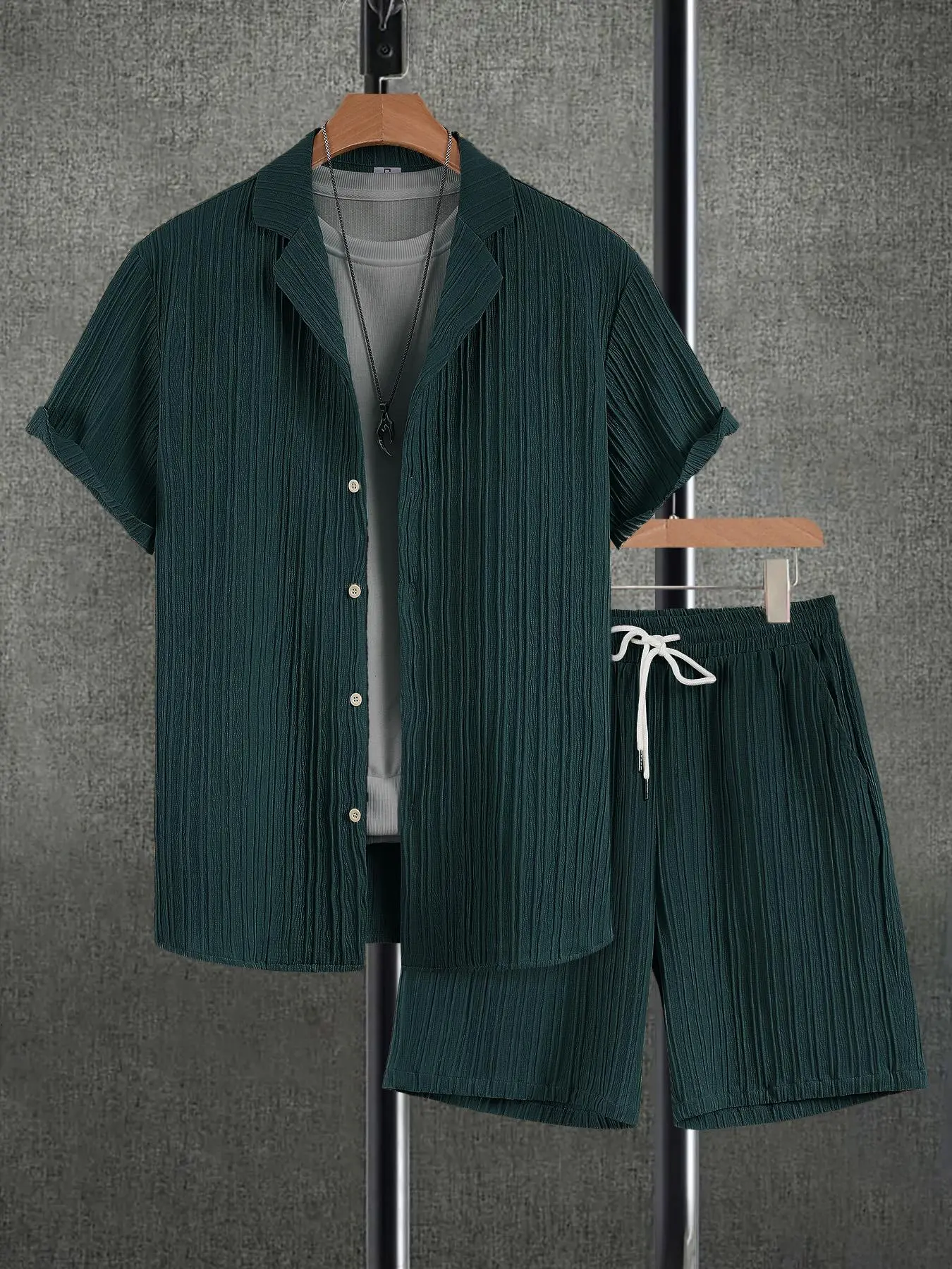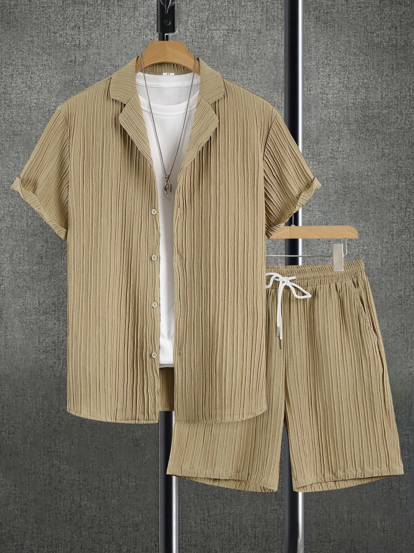 Men's Solid Short Sleeve Top & Shorts Set, Regular Fit Casual Top & Shorts, Men's Summer Clothes, Menswear, Tropical