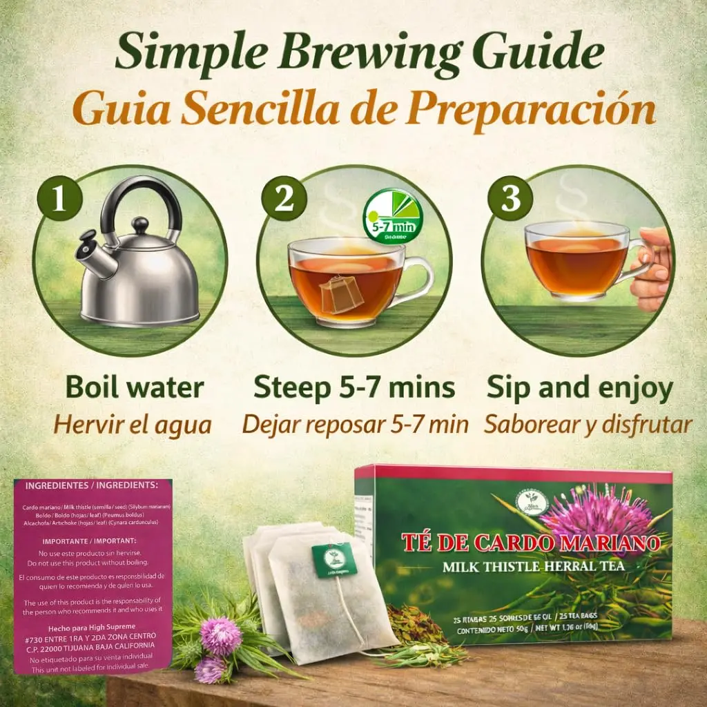 Sourced from premium Cardo Mariano (Milk Thistle), this tea is 100% natural, caffeine-free, and vegan perfect for any time of the day.