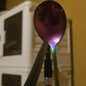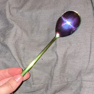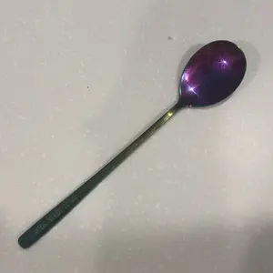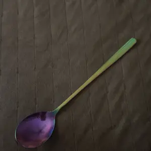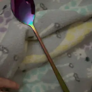 This spoon is hugeeeeeeeee. I mean it’s big. I had to use it as soon as I got it. It’s very pretty and I’ve never had rainbow utensils before so idk if you have to wash it a certain way or anything but I like it. 10/10 if you like big spoon.