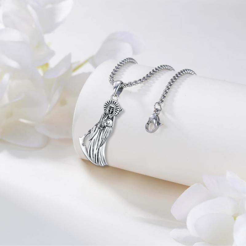 ·Material: Santa Muerte Necklace jewelry is crafted of 925 sterling silver. Lead-free, nickel-free and cadmium-free and skin-friendly. Hand crafted, platinum plating process extends the life and keeps it shiny for a long time.