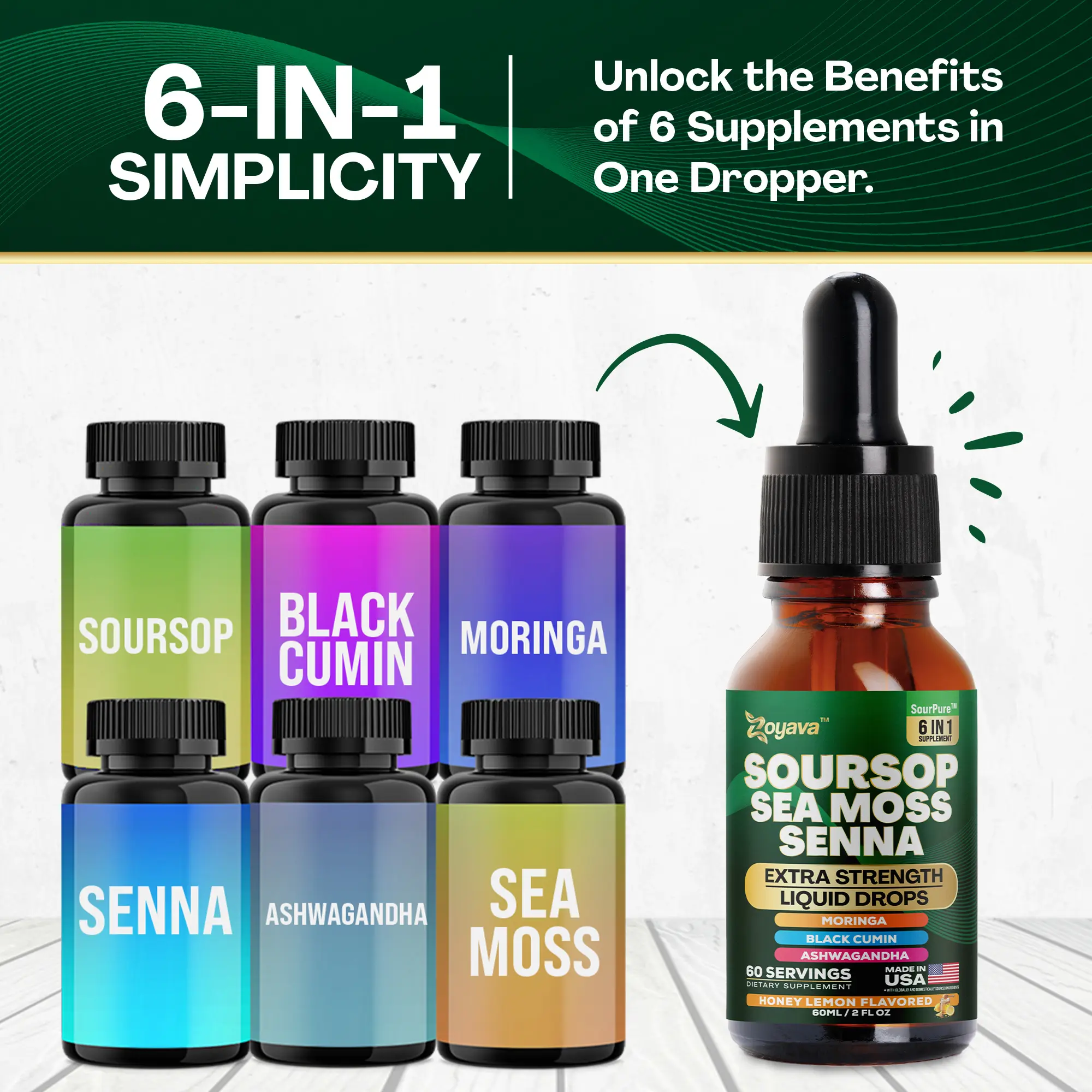 Discover the power of nature with Zoyava Soursop Flavored Drops, a premium all-in-one supplement crafted with our signature SourPure Blend. Featuring a potent mix of plant-based extracts, this formula is designed to complement your daily routine with high-quality ingredients sourced for their traditional uses.