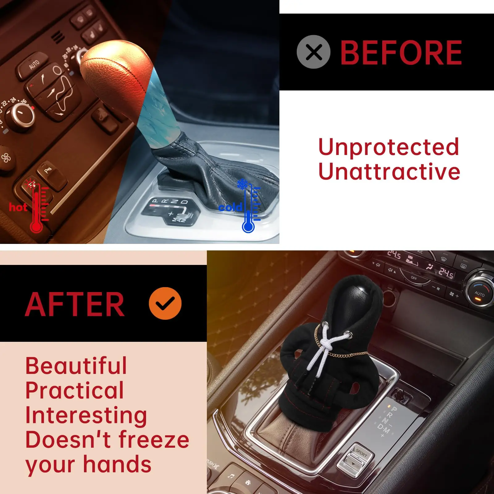 ·Versatile Usage: This product is designed to be used year-round. In winter, it keeps your hands warm when you first enter the car, while in the summer, it protects the gear shift knob from becoming uncomfortably hot to the touch due to sun exposure.