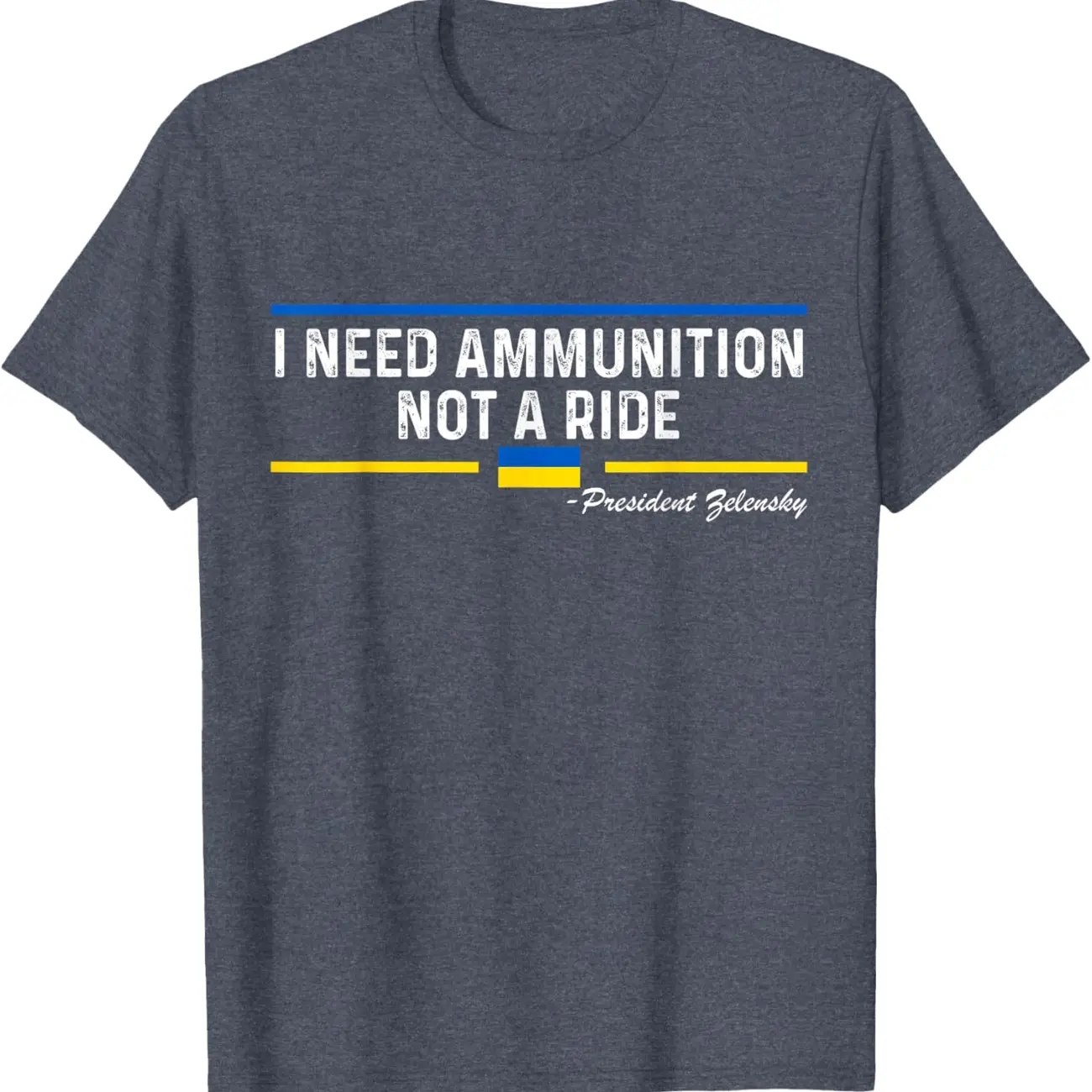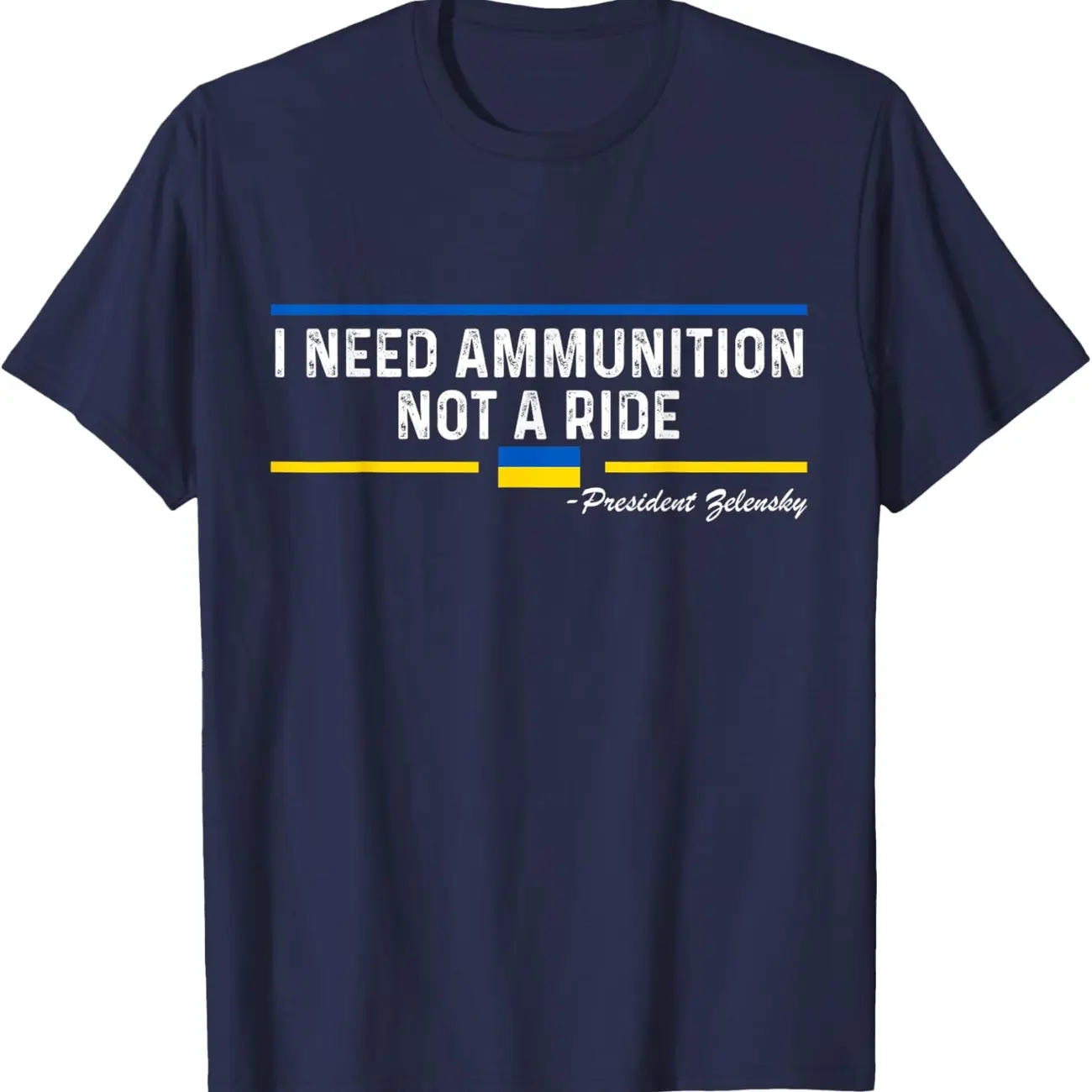 President Zelensky I Need Ammunition Not a Ride Ukraine Flag T-Shirt GJKT6