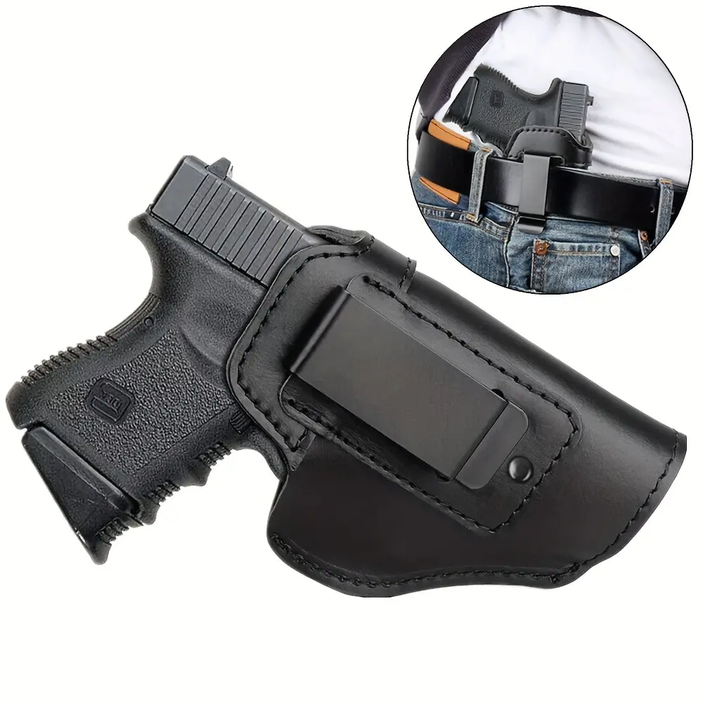 Left-Handed Black Concealed Carry IWB Pistol Holster - Suitable for 2.25inch Waistband, Traditional Style, Right-Hand Draw, Waistband Interior Design, Pistol Holster|Fashionable Black Leather Case|Suture appearance
