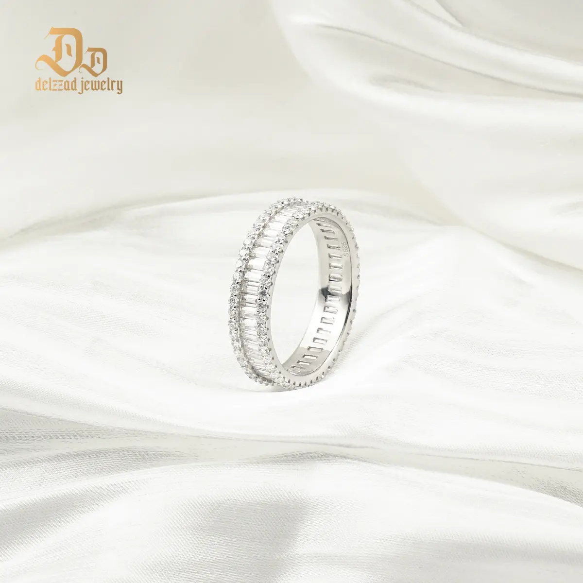 ·Layered baguette and round-cut synthetic moissanite stones symbolizing endless love and commitment, perfect for weddings, anniversaries and more.