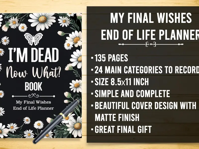 Prepare for your final wishes with the I'm Dead Now What Book My Final Wishes | End of Life Planner. This essential tool is designed to help your loved ones make informed decisions about your care and end-of-life planning.