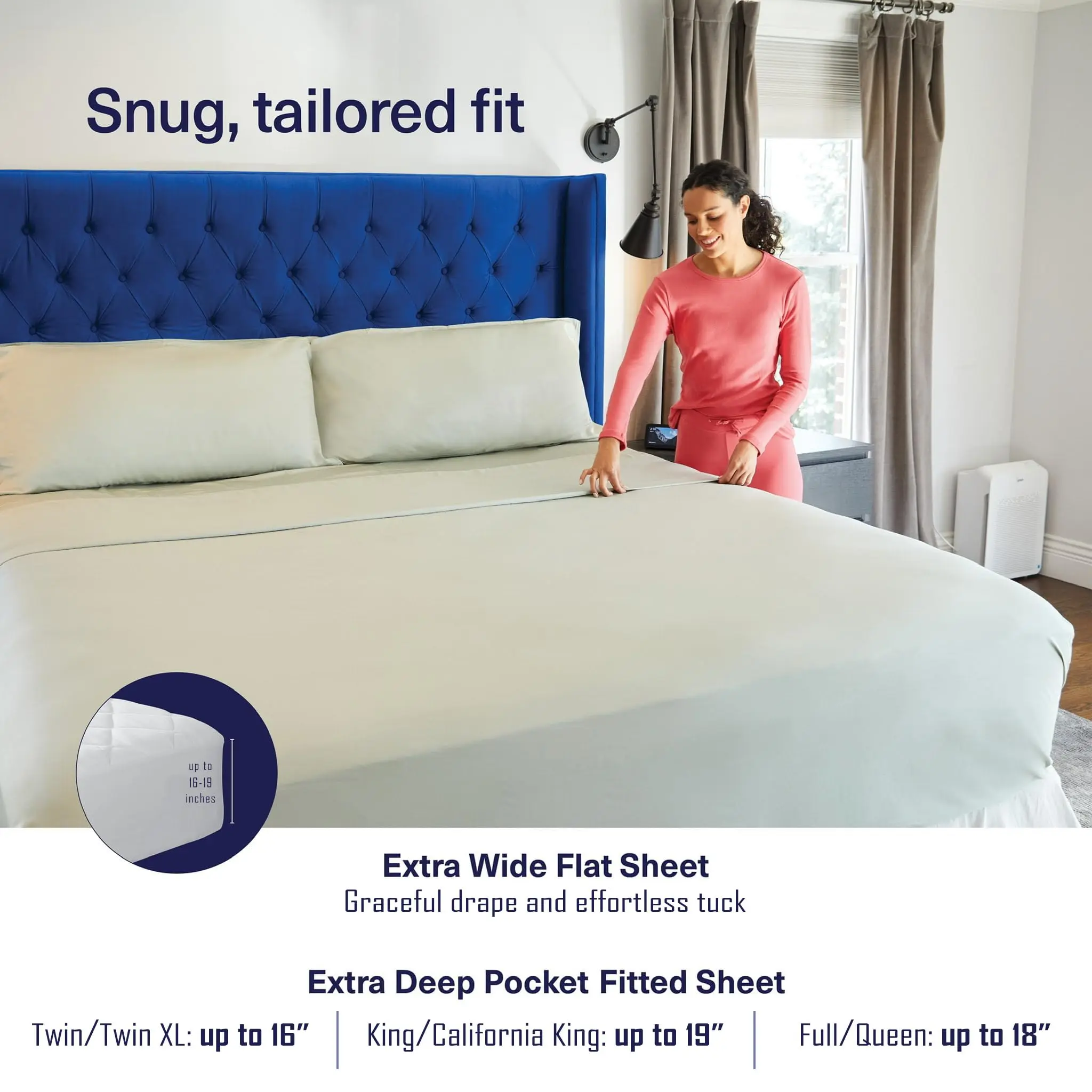SleepTight Tech Elastic Straps: Heavy-duty non-slip elastic straps in all four corners of our deep pocket queen sheets bamboo viscose and thick elastic all around ensure a snug and secure fit.
