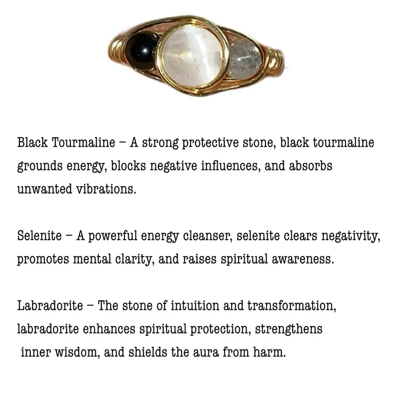 Protect your peace and guard your energy with this handcrafted Protection Ring. Designed with three powerhouse crystals, this ring creates a spiritual shield — perfect for empaths, healers, and anyone who feels everything deeply.