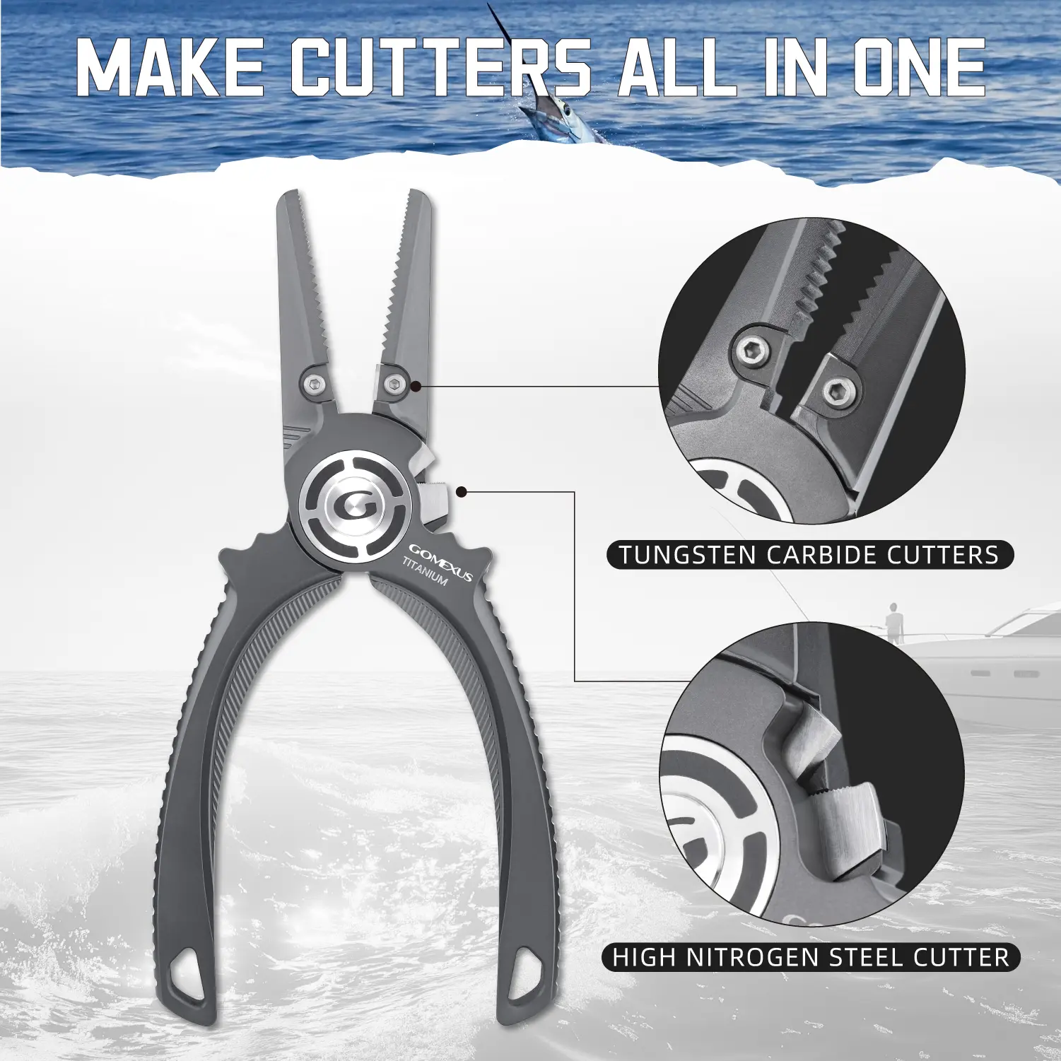 The Gomexus 7.5-inch Titanium Alloy Fishing Pliers are meticulously engineered for offshore fishing. Built to handle tough conditions, these pliers excel in cutting steel wire leaders while offering durability, precision, and functionality.