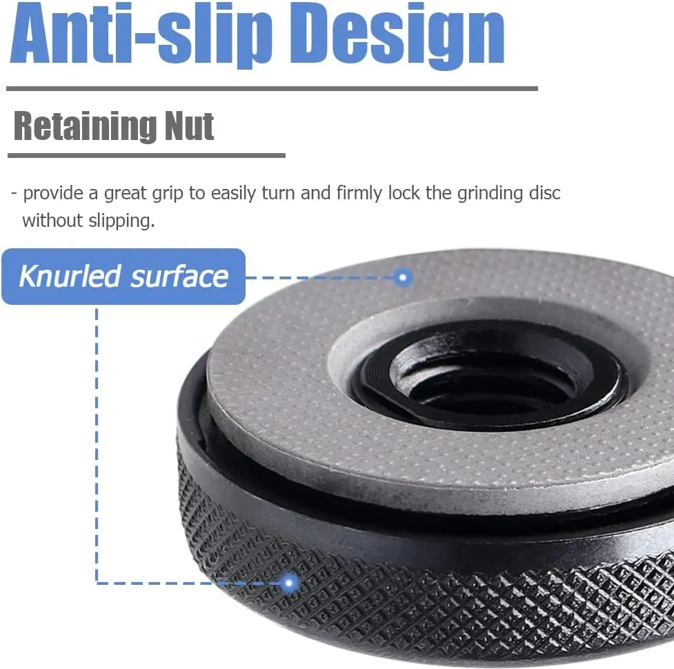 The knurled surface on the side and base of the flange nut provides a great grip. It locks the grinding disc firmly without slipping, ensuring stability during use.
