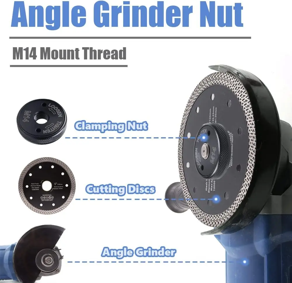 The M14 mount thread fits most angle grinders. Secure grinding discs or other attachments to your angle grinder effortlessly.