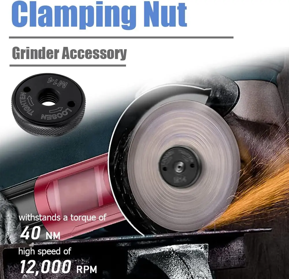 Made of 45# Steel, this nut features high hardness without deformation. It withstands a torque of 40 Nm and a high speed of 12,000 rpm. Ensure compatibility with your angle grinder before purchase.
