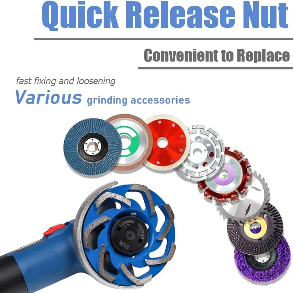 This nut allows accessories to be clamped and loosened without tools. It offers fast and easy attachment and removal of grinding discs, enhancing work efficiency.