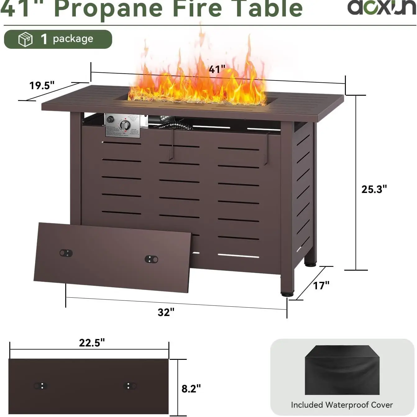 ·【2 in 1 Outdoor Fire Pit Table】 The outdoor table comes with a removable fire pit lid, allowing it to be used as both a dining table and a fire pit table! Whether you're relishing the convenience of patio dining table in spring and summer or basking in the warmth of the fire pit during autumn and winter, it's designed to accompany you in all seasons. Besides, the maximum propane gas can reach 20LBS, and can burn continuously for about 8 hours, which is in high performance.