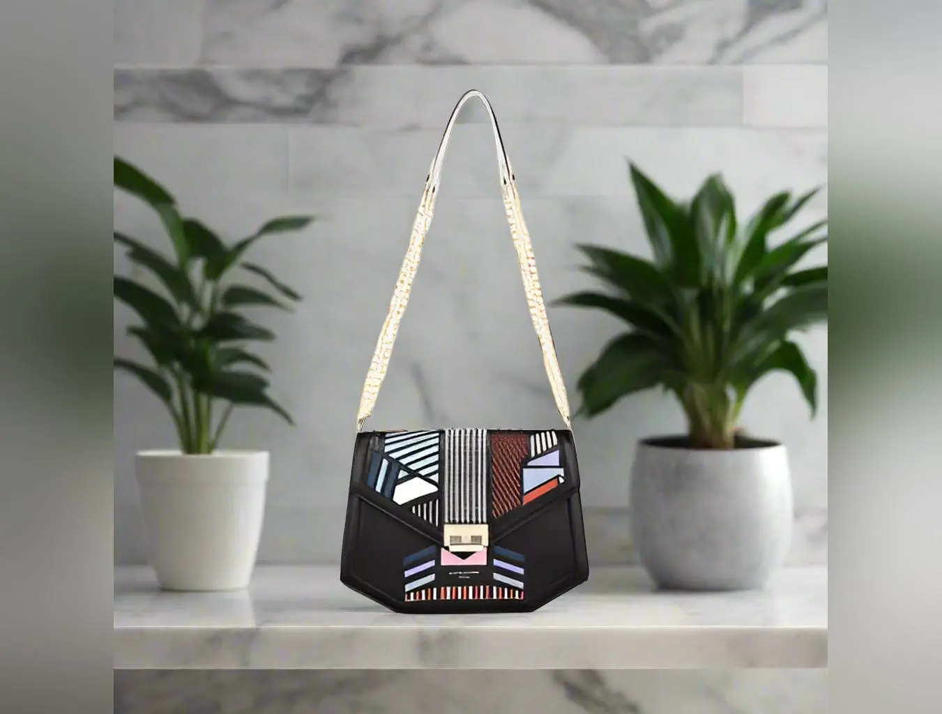This geometric print crossbody bag is a trendy and eye-catching accessory that adds a modern touch to your outfit. The geometric pattern creates a stylish and unique look, perfect for adding a pop of personality to your ensemble. The crossbody style offers hands-free convenience while on-the-go. Stay on-trend with this geometric print crossbody bag that is both stylish and functional.Bag size: Medium