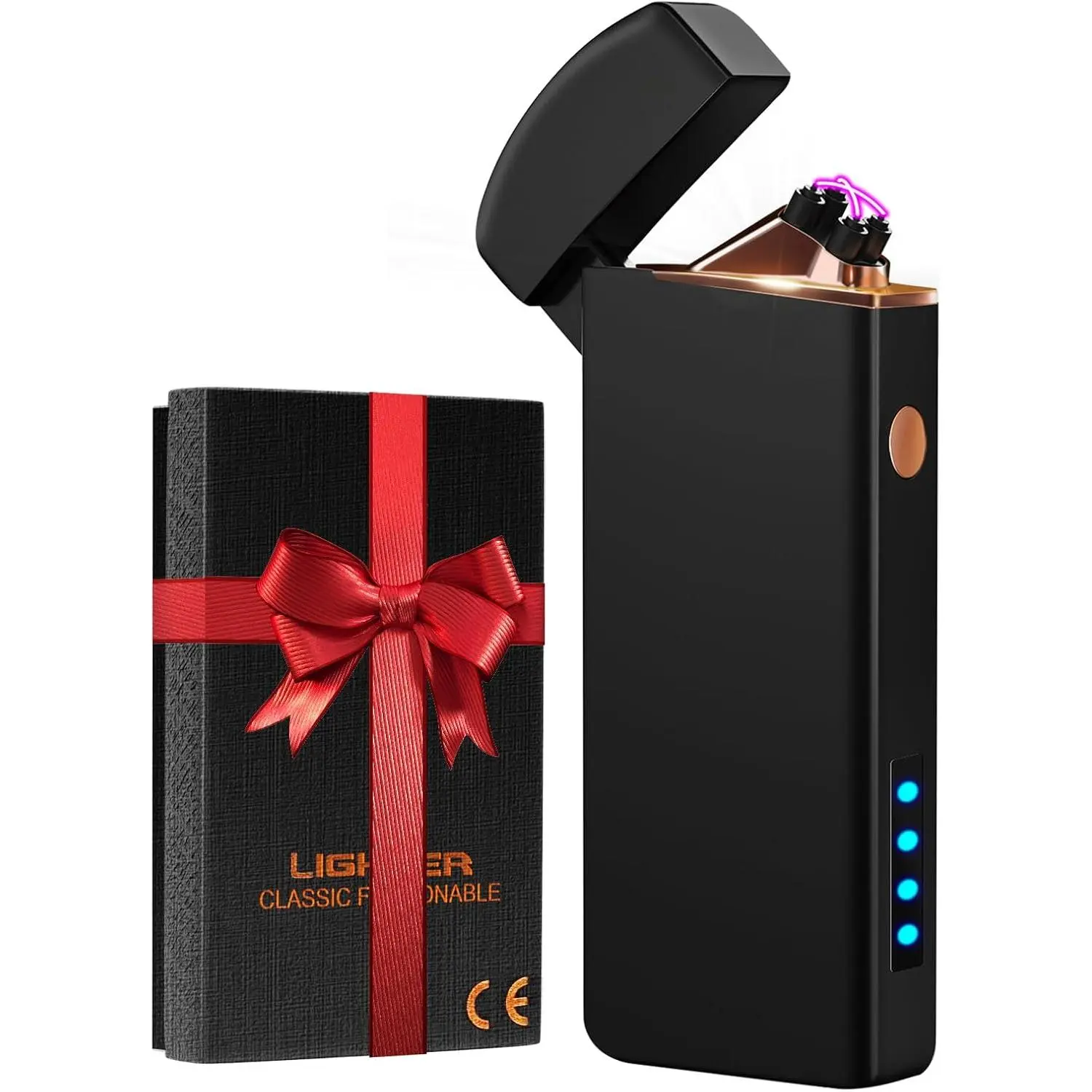 ·🔋𝑩𝒓𝒂𝒏𝒅 𝑵𝒆𝒘 𝑼𝒑𝒈𝒓𝒂𝒅𝒆𝒅 𝑳𝒊𝒈𝒉𝒕𝒆𝒓: USB rechargeable lighter features an upgraded lithium battery that is more lasting and can be fully charged in about 1.5 hours, equivalent to 300 traditional lighters. The body has 4 LED indicator lights to display real-time battery level and remind you of remaining power. It does not require gas or butane, making it safe, environmentally and cost-effective