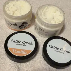 Body Butter Ingredients: Grass-fed Beef Tallow, Extra Virgin Olive Oil, if you want a scent you can choose from Vanilla and Lavender Vanilla Essential Oils