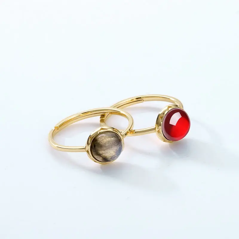 ·Natural garnet or labradorite center stone ring.