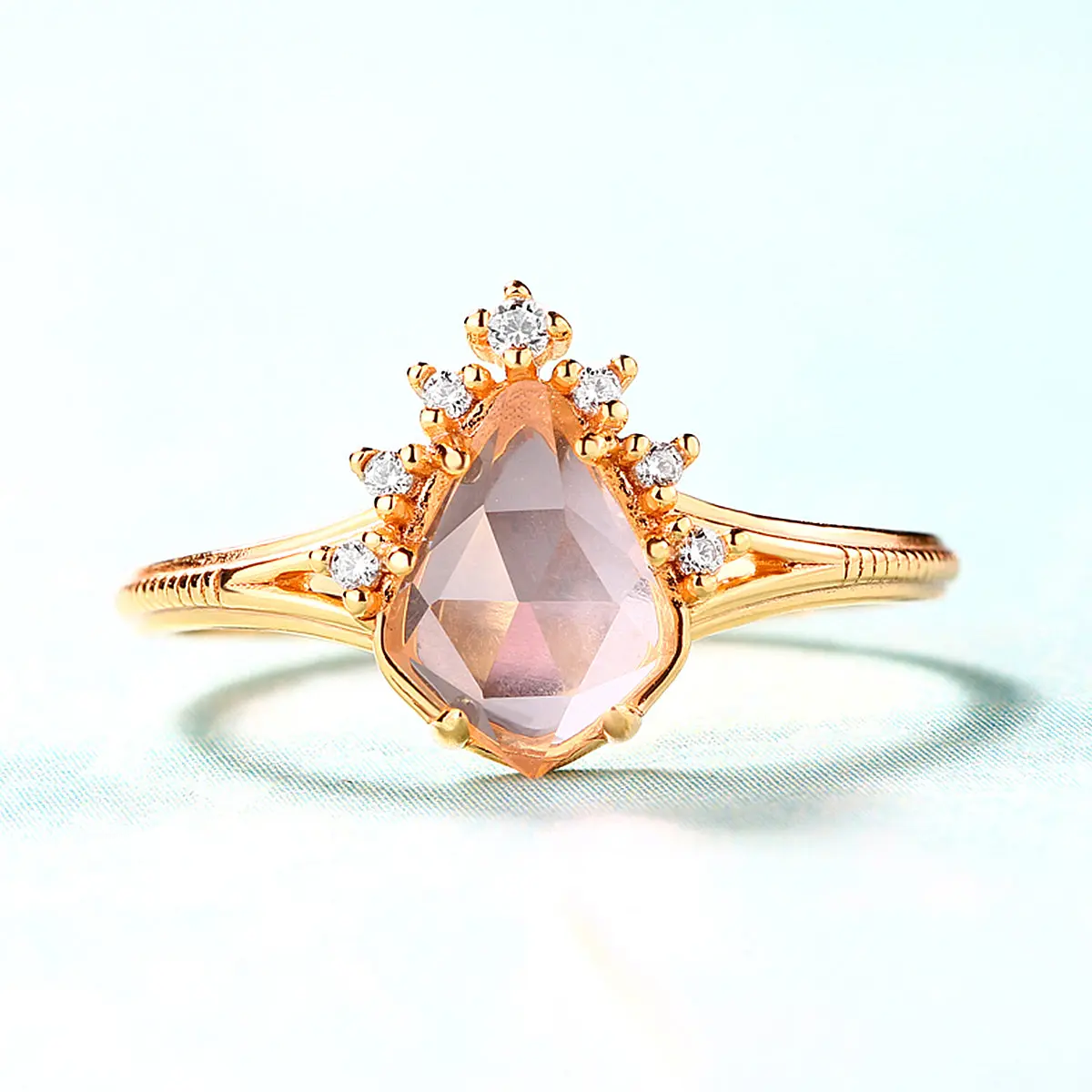 Rose Quartz Pear Cut Adjustable Ring