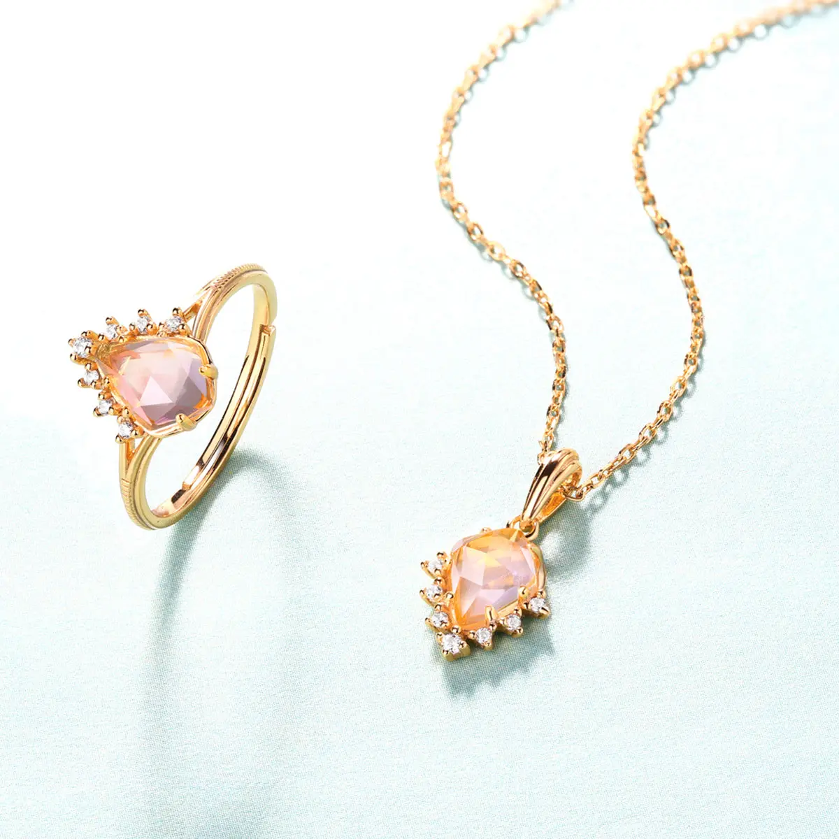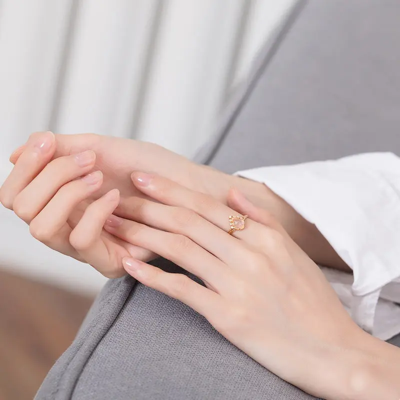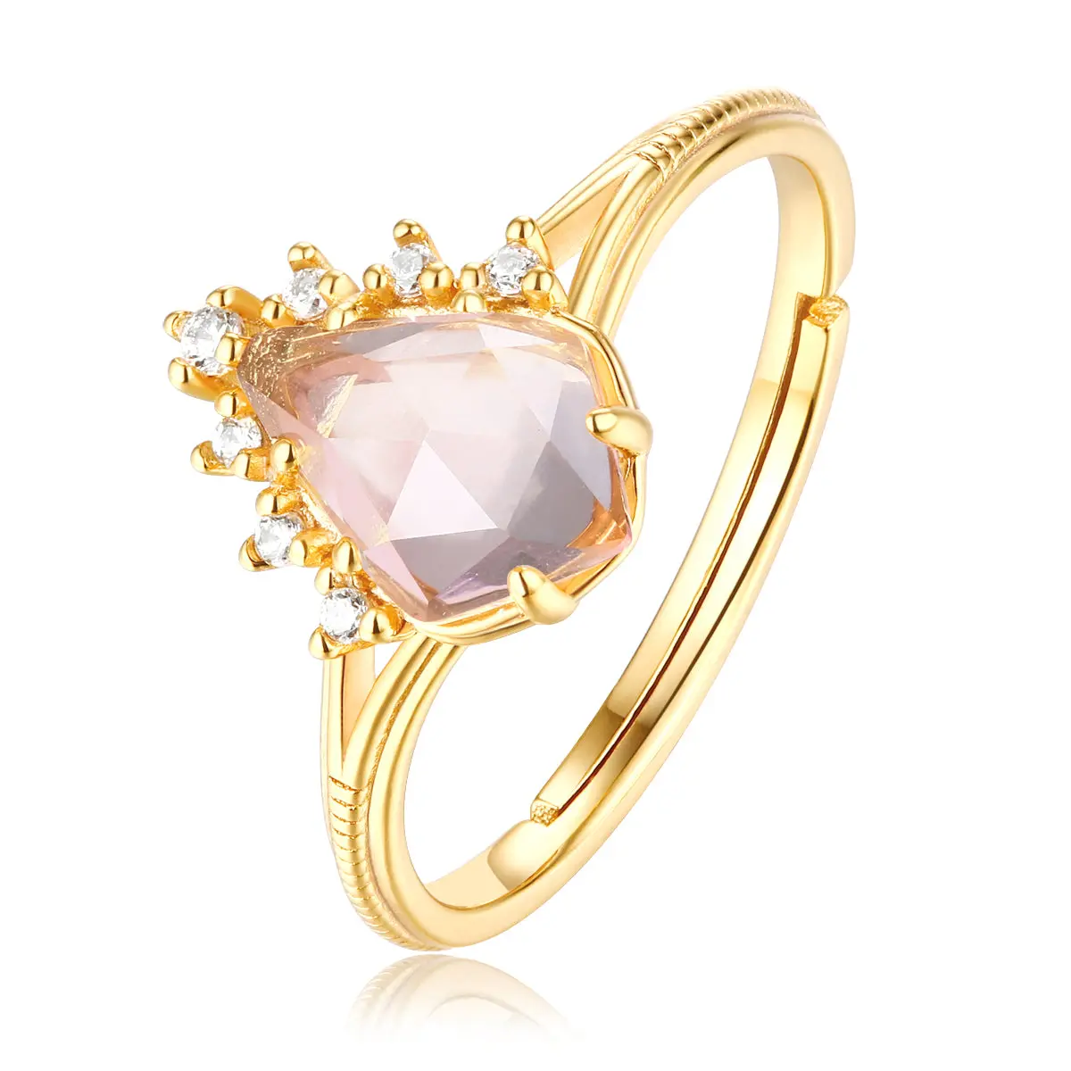 ·Natural rose quartz center stone ring.