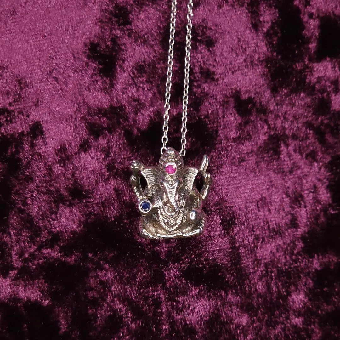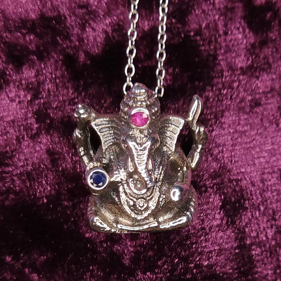 The Ganesha Sterling Silver Pendant with Ruby and Sapphire is a symbol of wisdom, prosperity, and new beginnings.