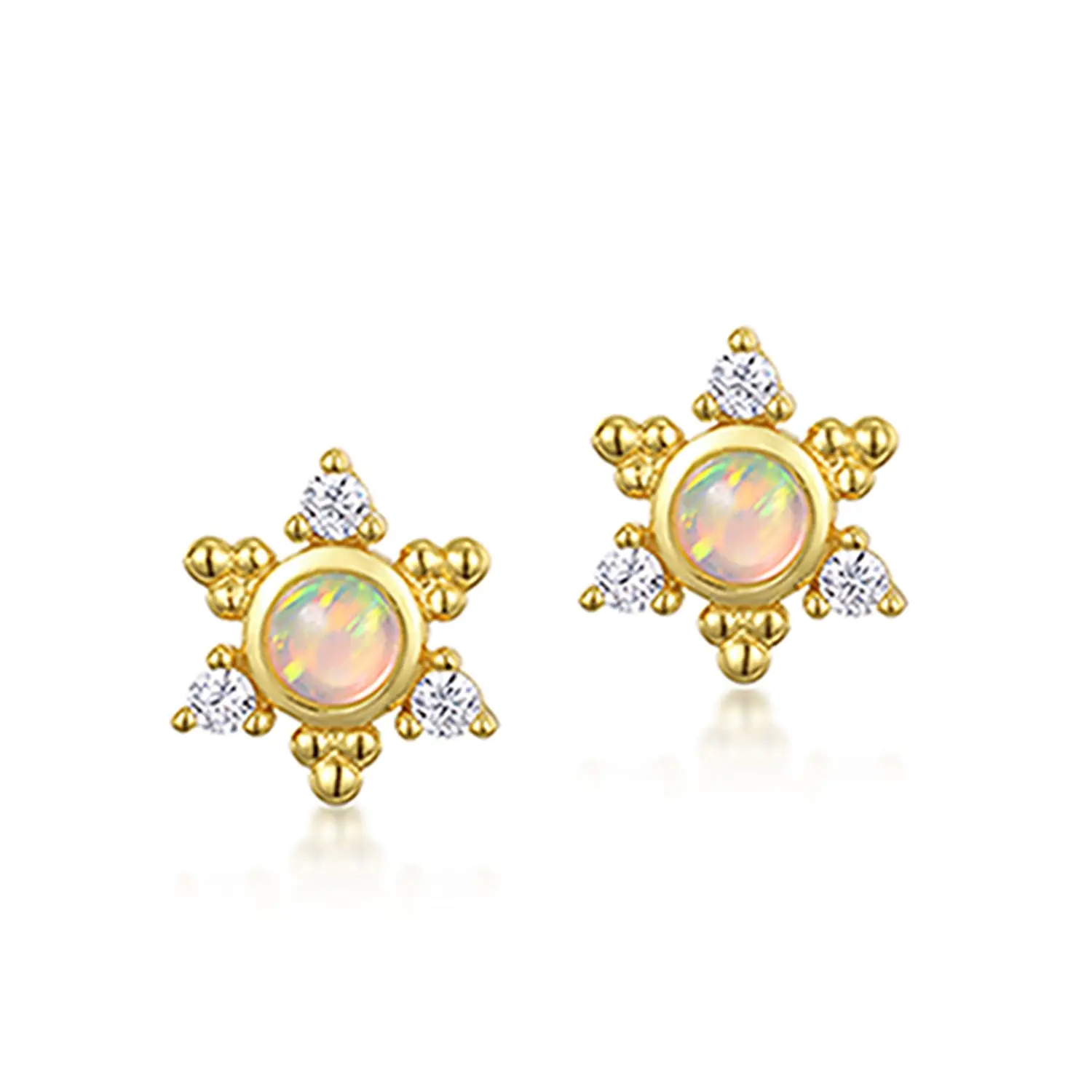 Oufer 20G Semiprecious Opal Mixed AAA+ CZ Nostril Nose Ear Segment Hinged Piercing Hoop Ring 316L Stainless Steel Body Jewelry Non Tarnish