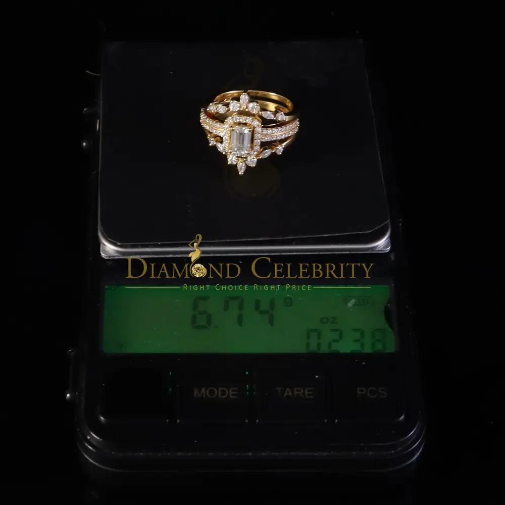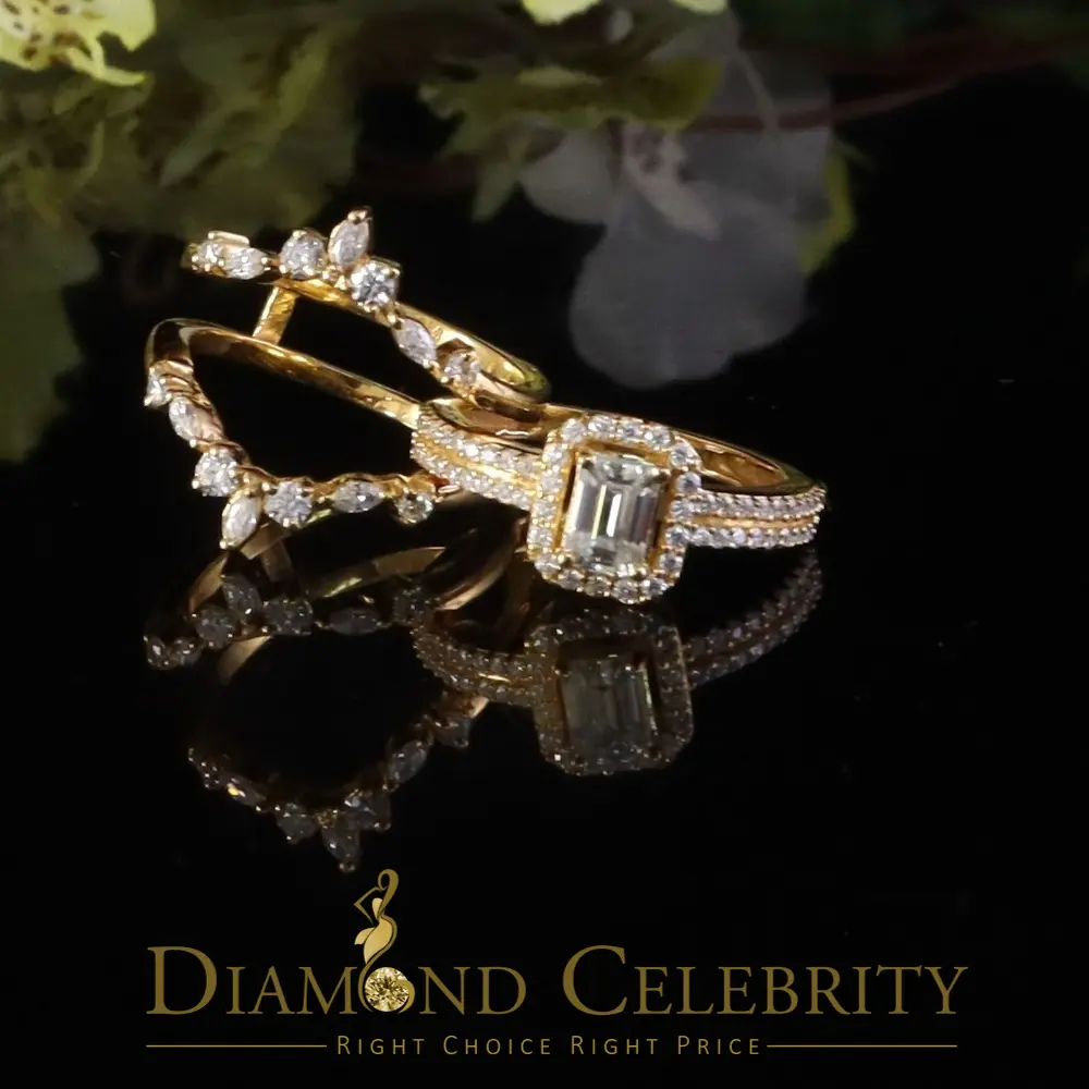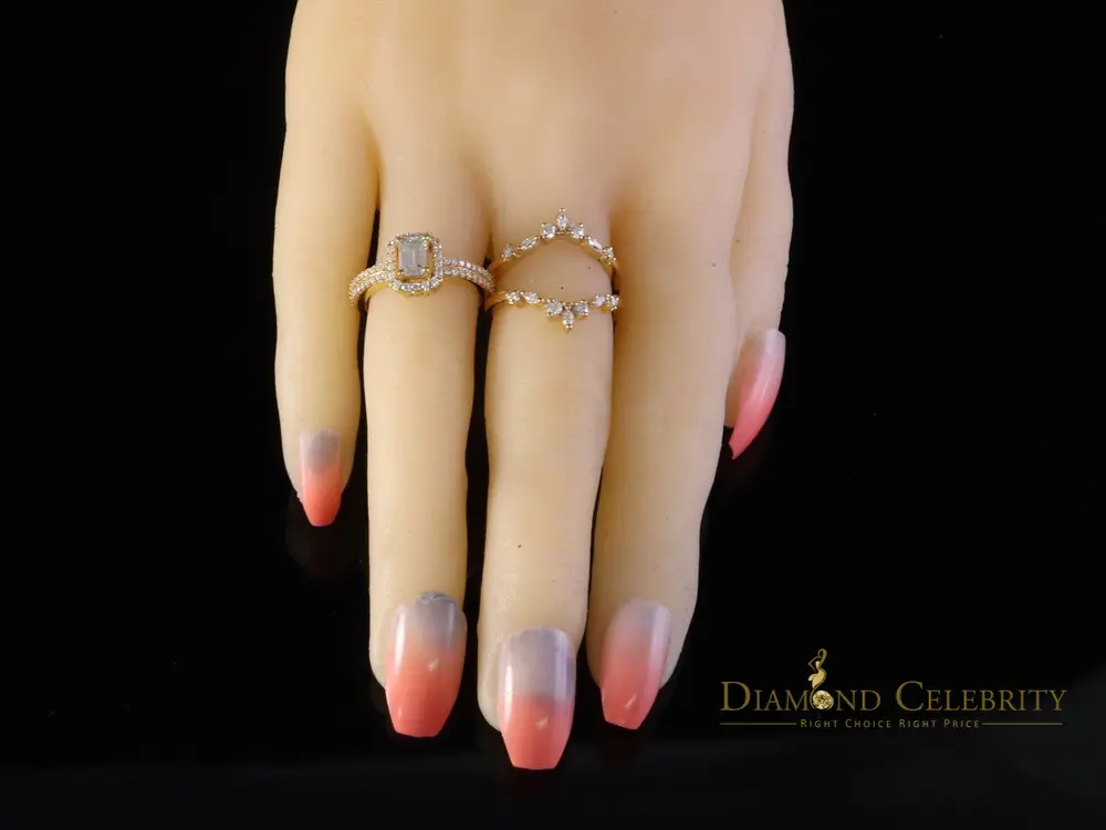 ·Style : Bridal W/ Guard Emerald Cut Rings Silver Moissanite Womens
