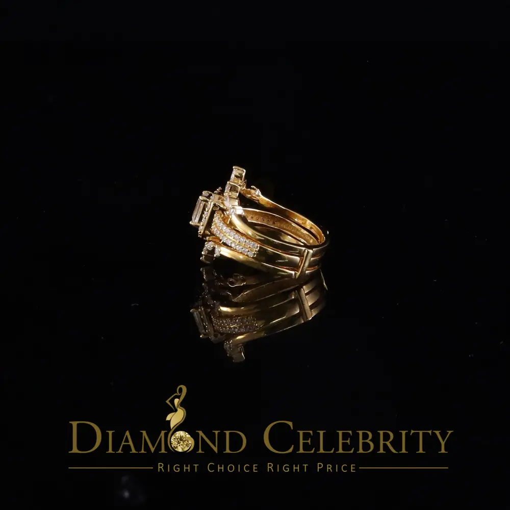 Silver wedding Ring- DiamondCelebritees Solitaire Enhancer Guard Wrap Ring Insert 2CT Moissanite 925 Silver Yellow SZ 7