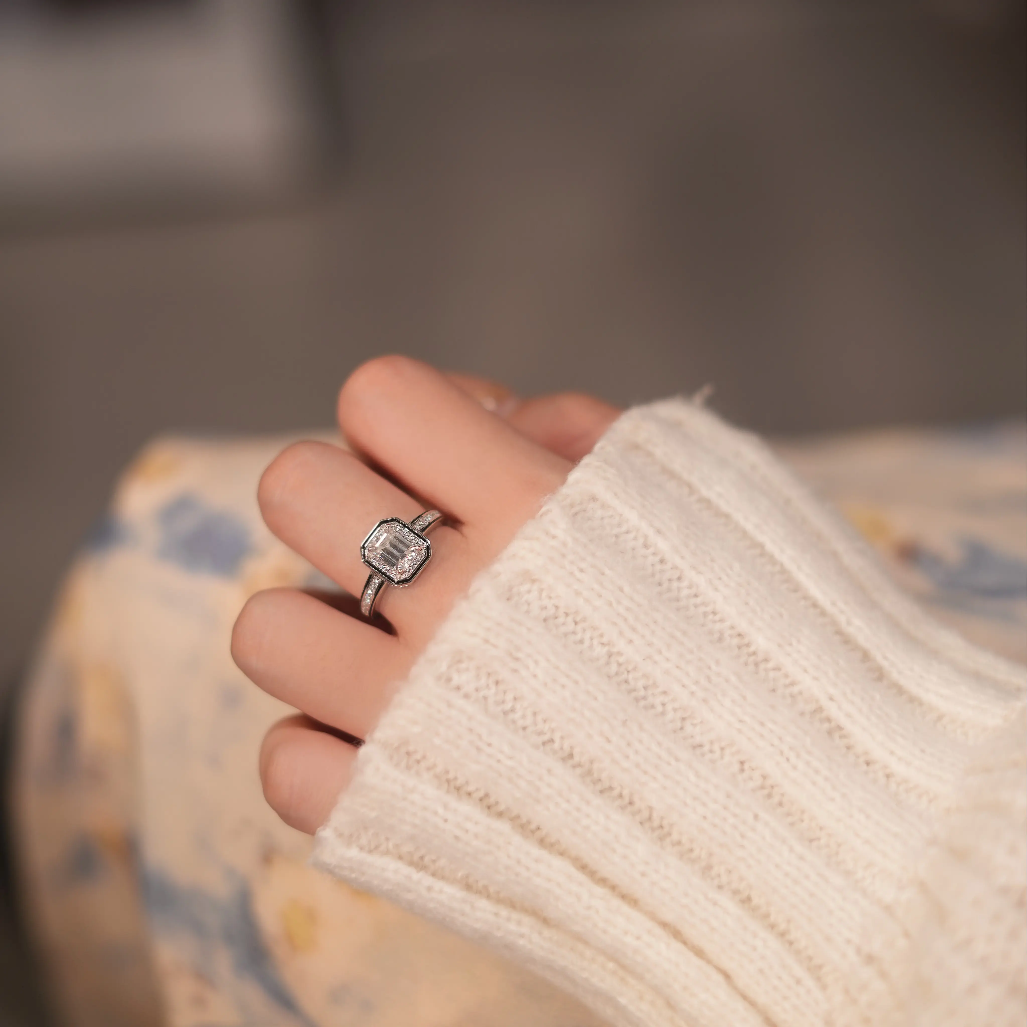 ·Its black enamel designand emerald cut main stone make this ring presents an Europe vintage vibe, center stone is surrounded by suning side stones(5A CZ), shining together with glossy silvery tone.