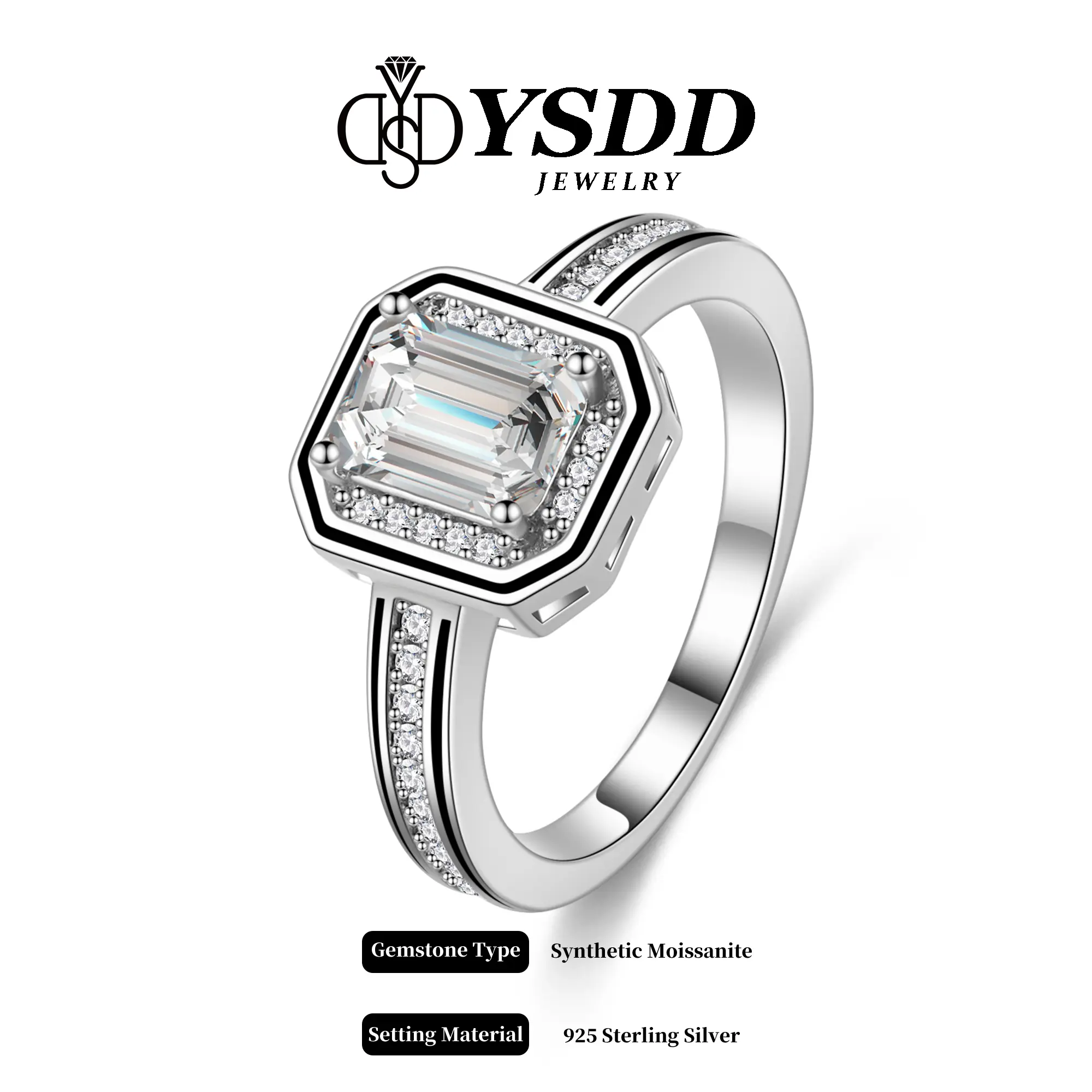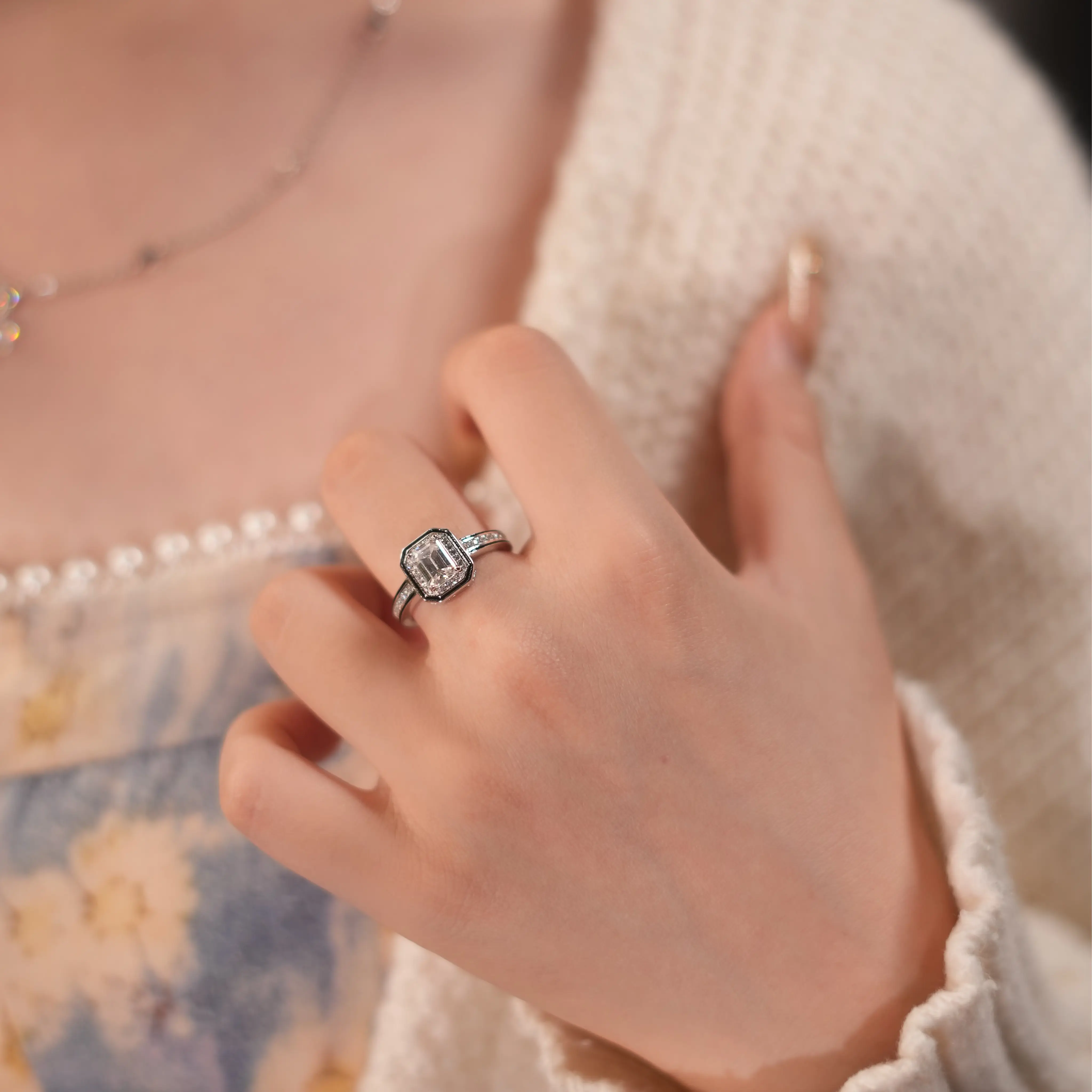 ·Black enamel 1carat bezel set ring, its bezel stone features a emerald cut synthetic moissanite in D color, with a clarity of VVS1-2.