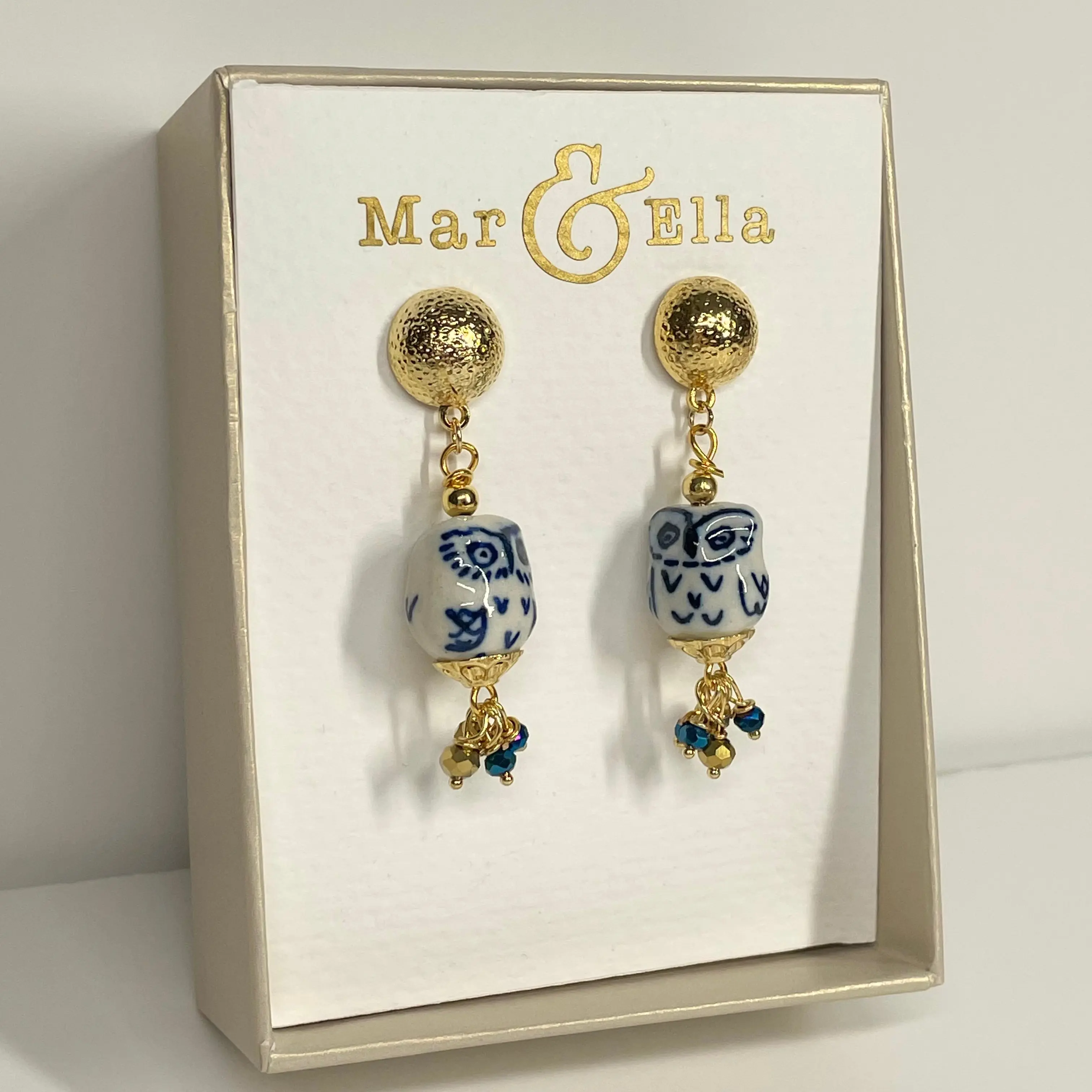 Materials : Porcelain Owls, 24K Gold Plated Earring Studs, Real.
