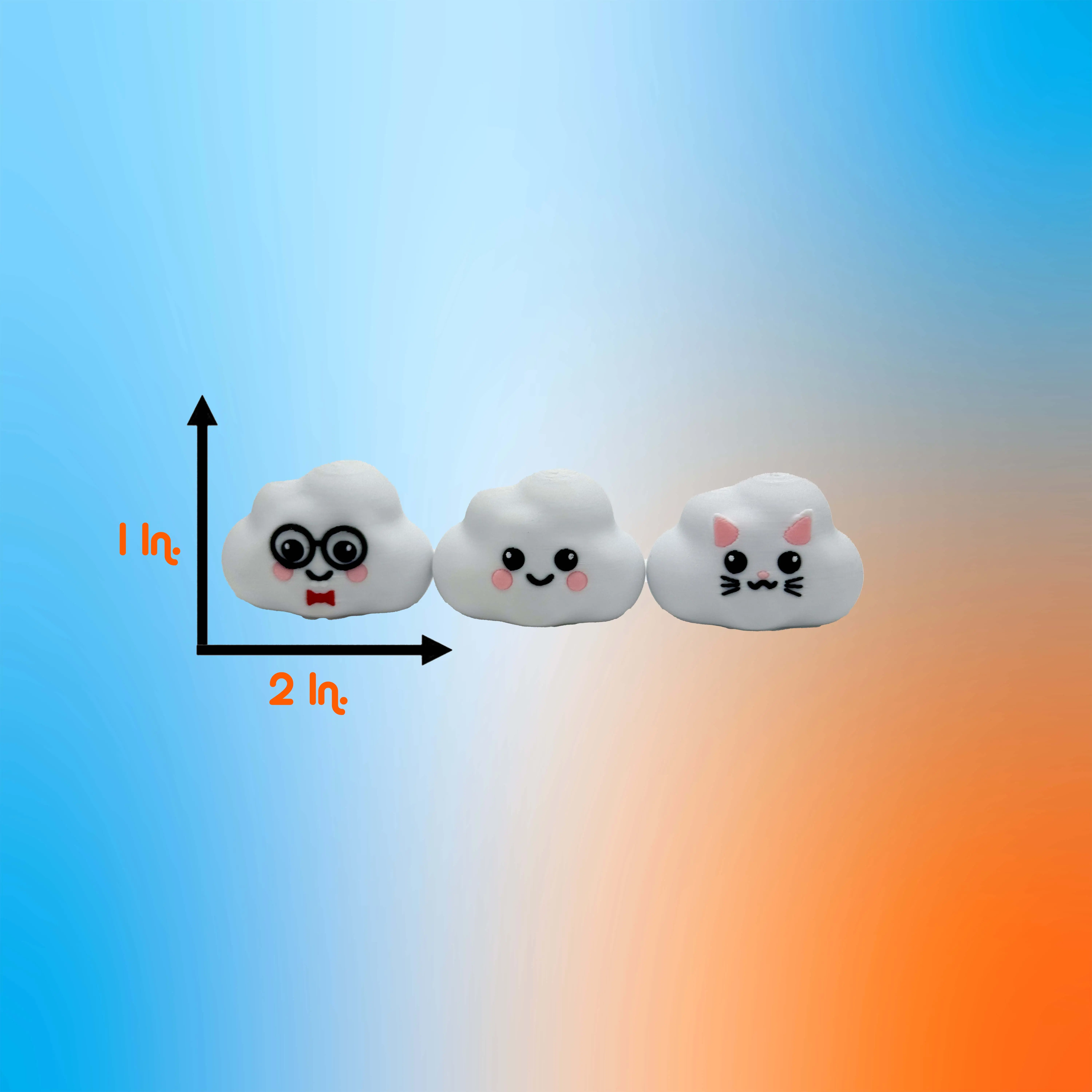Each Cloudy is 2x1.5x1 in in size and weighs .3 ounces