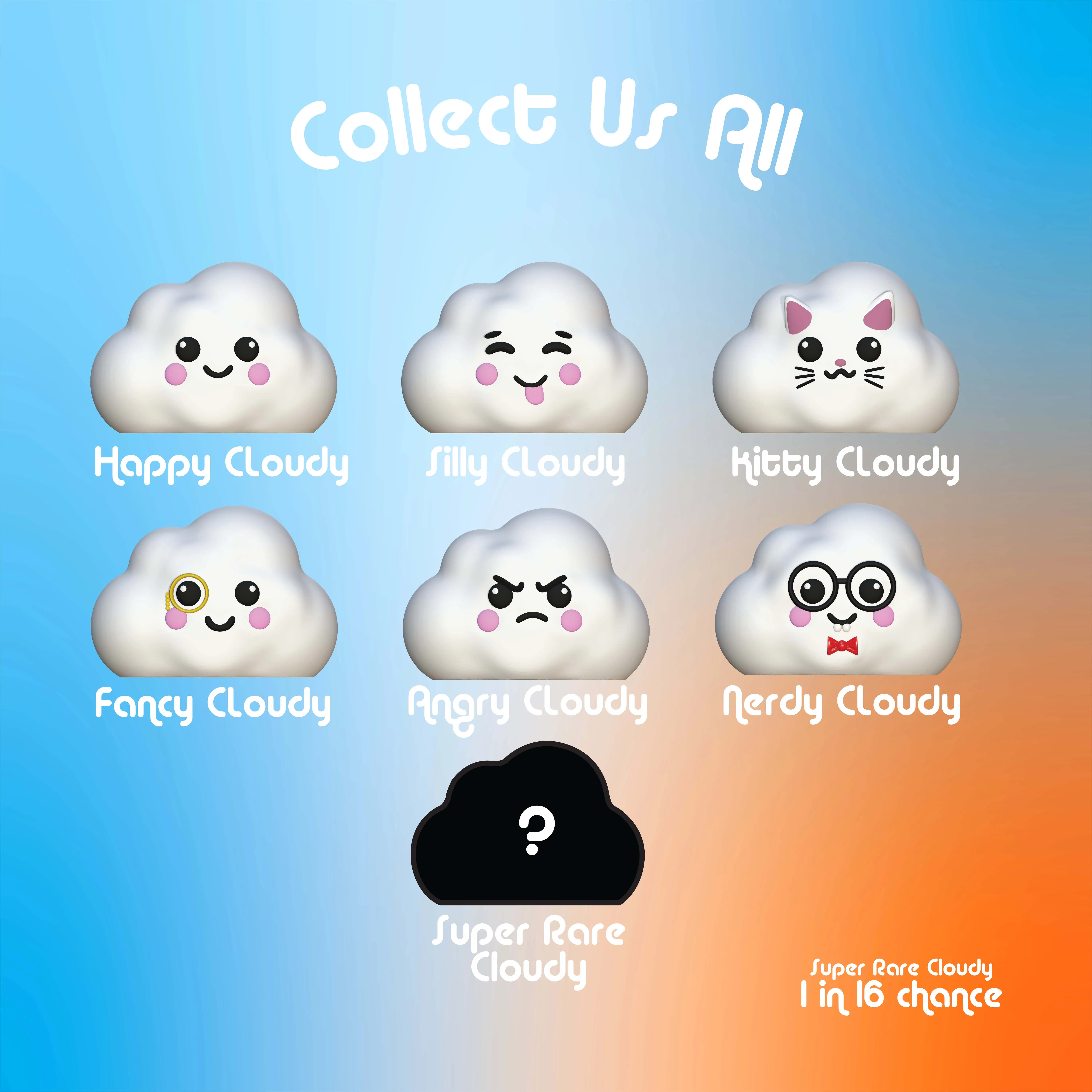 Unbox the magic of Cloudy, a mystery mini cloud with 7 unique variations to collect! Each blind box holds a fun and quirky cloudy waiting to be discovered. Collect them all before they float away.