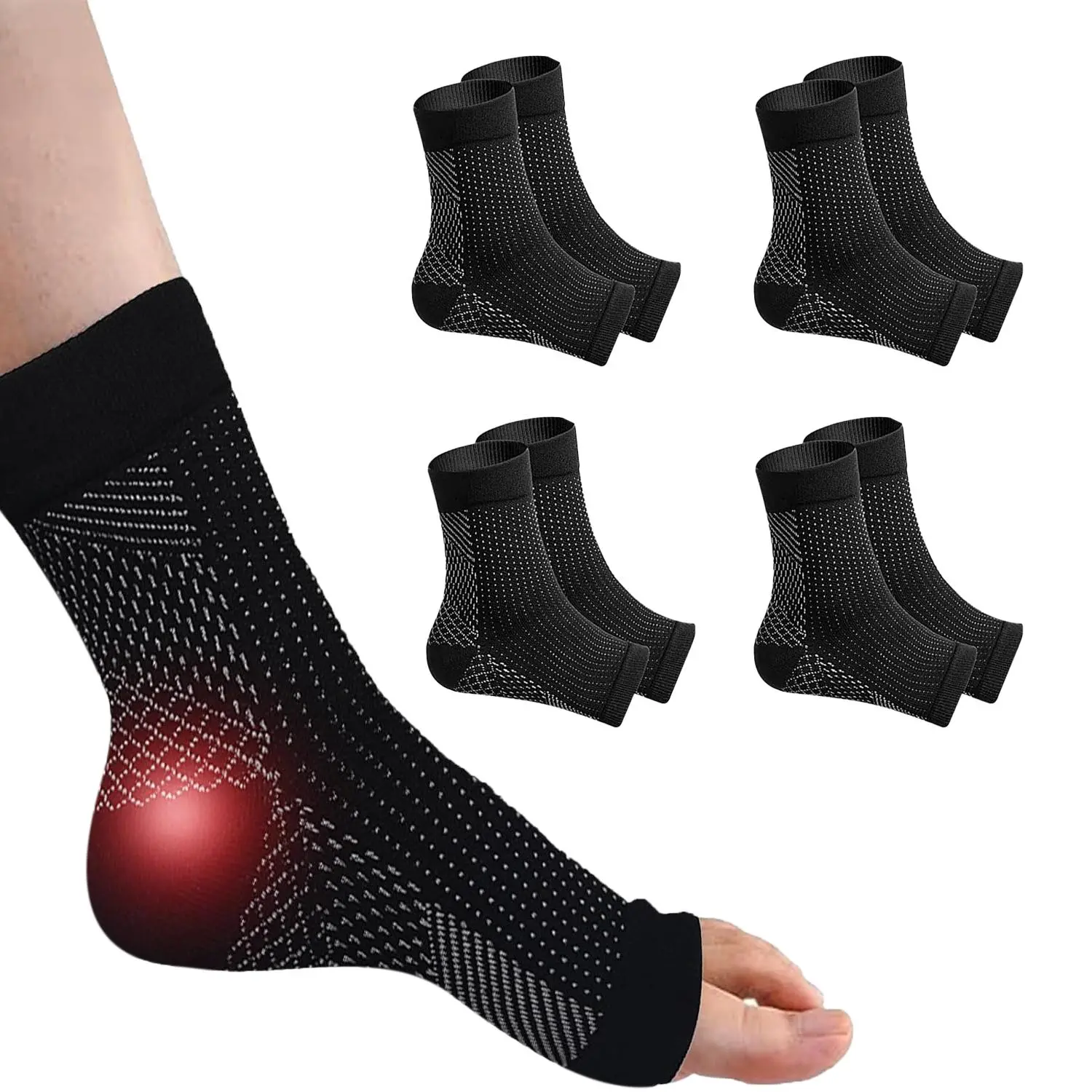 4Pairs Foot & Ankle Brace Socks for Sprained Ankle Compression Sleeve, Plantar Fasciitis Relief Brace, Foot Support for Women & Men