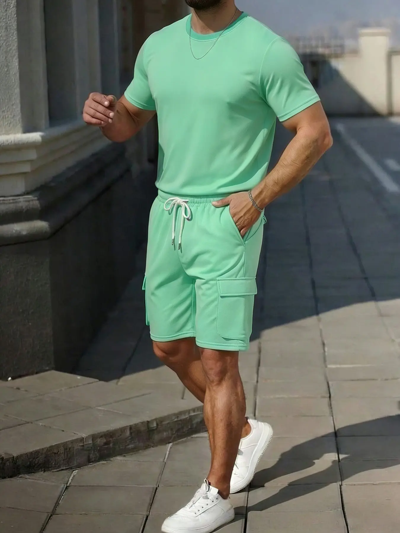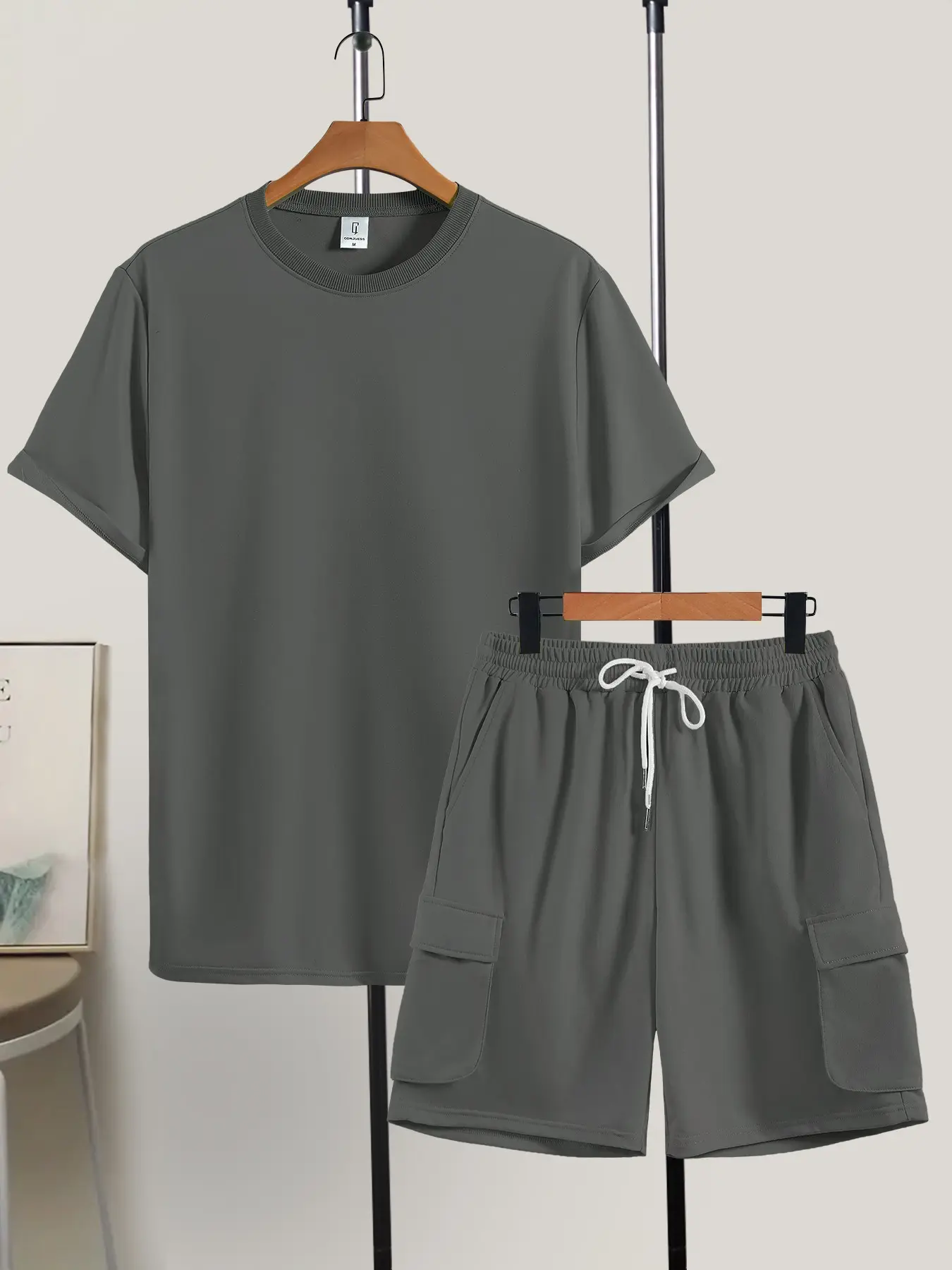 Men's Solid Color Tee & Drawstring Waist Shorts Two-piece Set, Regular Fit Breathable Soft Comfy Round Neck Short Sleeve T-shirt & Pocket Shorts Pj Set, Men's Casual Sleepwear for Summer