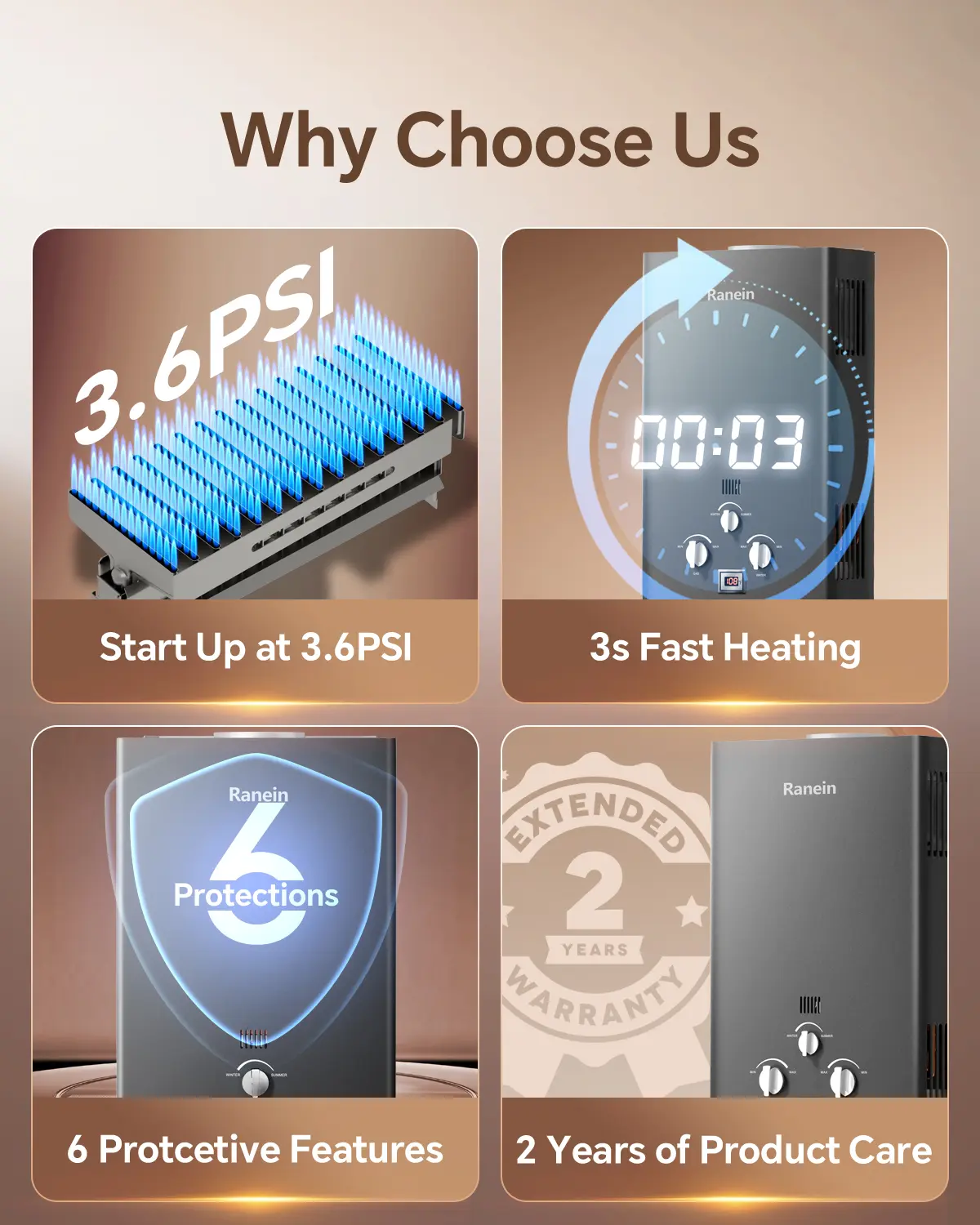 ·Safety & Support: Equipped with 6 advanced safety protections and backed by a 2-year warranty, this water heater is supported by our professional customer service team.