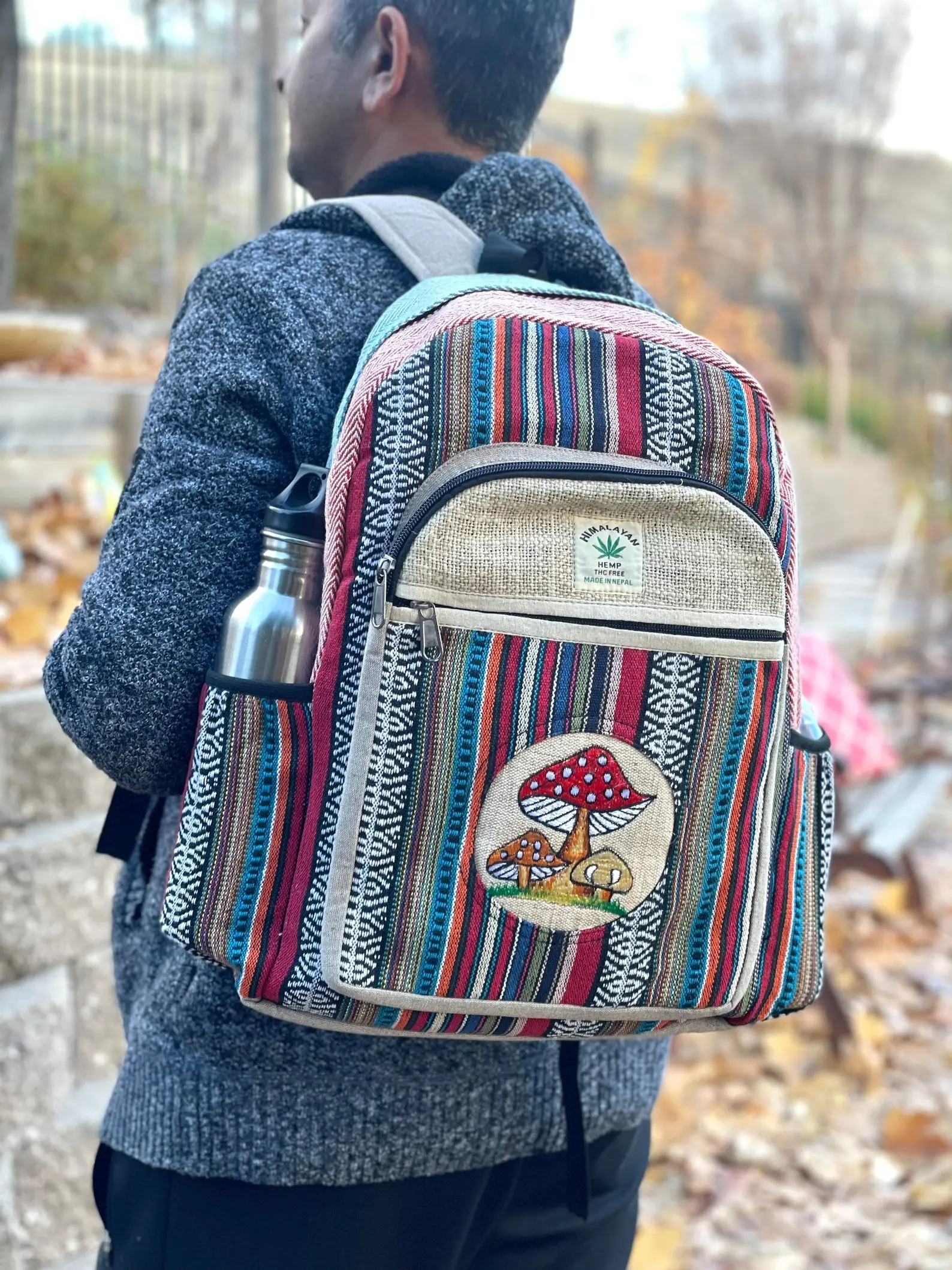 Whether you're heading out for a hike or enjoying a day out, the Sun Moon Embroidery LARGE Himalayan Hemp Backpack is the perfect accessory to enhance your experience.