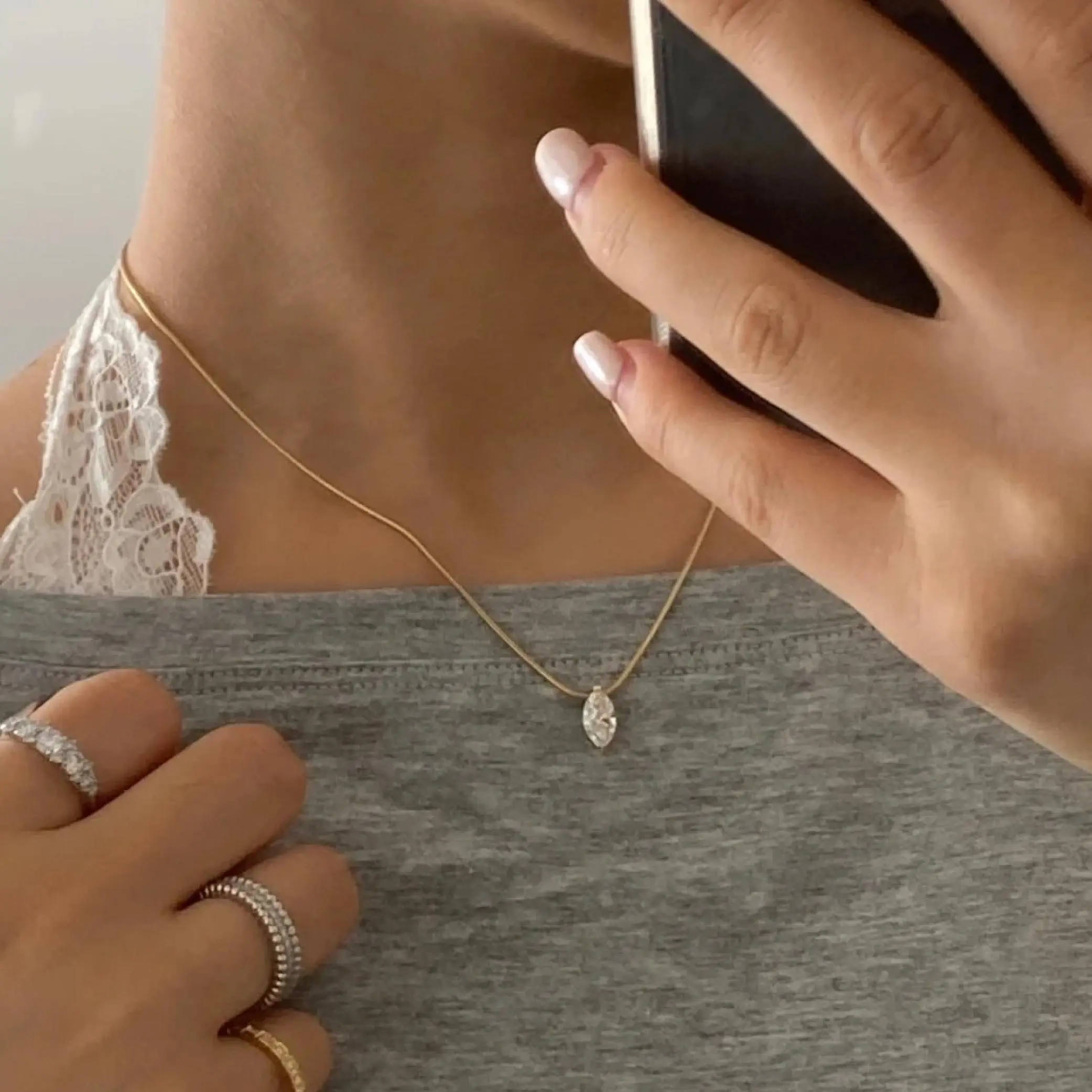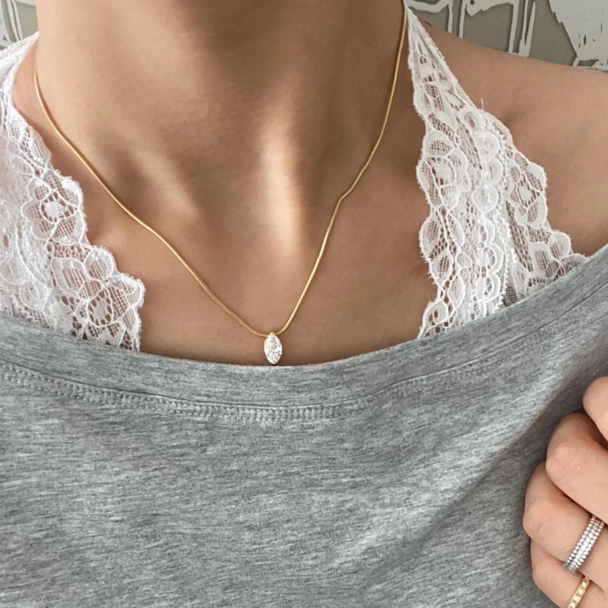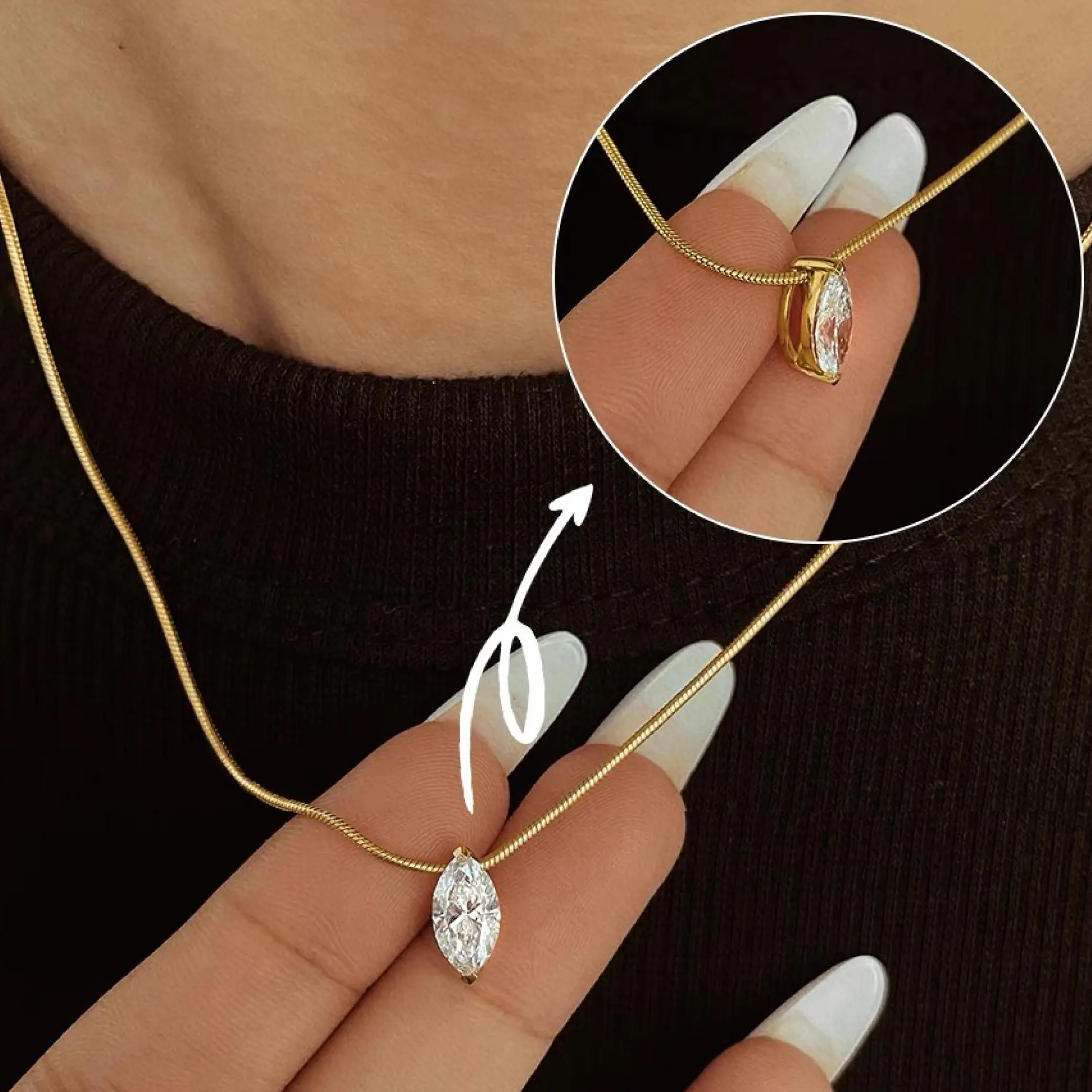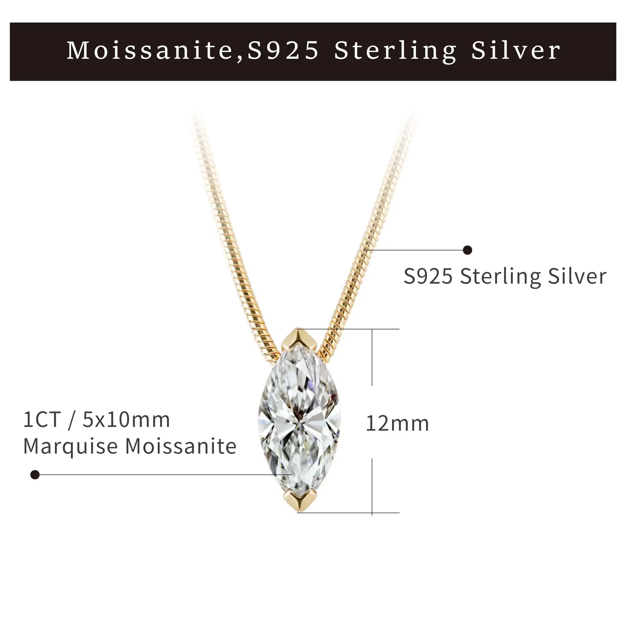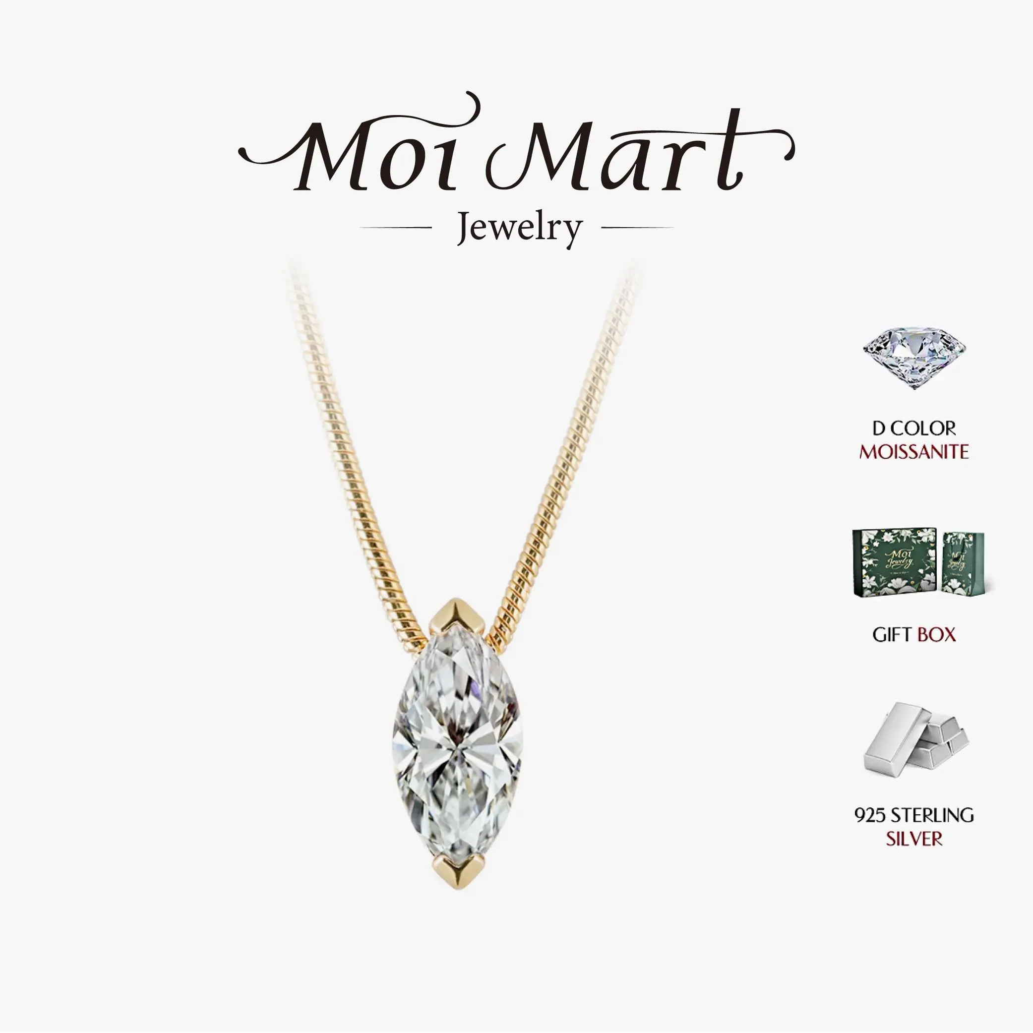 Moi Mart Marquise Cut Synthetic Moissanite Pendant Necklace - S925 Silver Solitaire Clavicle Chain, Trendy Choker Necklace, Perfect Gift and Daily Wear
