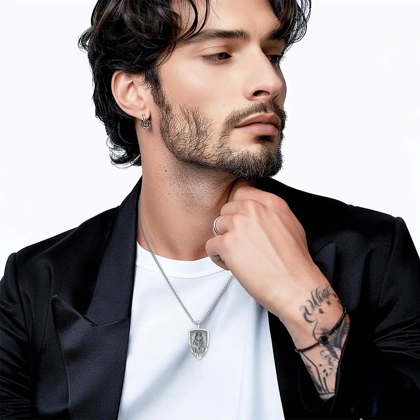 Saint Michael Necklace: This st michael pendant is carved with a dazzling image of st michael the archangel, vividly depicting the scene of archangel saint michael holding a sword to defeat demons. Saint michael the archangel is known to the faithful as God's mighty arm of strength - a protector and defender to those who call upon him