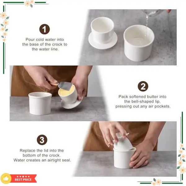 Easy to Use: Simply fill the lid with softened butter and pour water to the designated water level line. Once covered, the airtight seal will keep your butter fresh and soft, ready for spreading at any time.