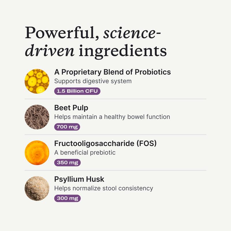 Each scoop of PetLab Co.โs Anal Gland Support contains a carefully selected blend of probiotics (Enterococcus faecium, Bifidobacterium longum) to support digestive health and the function of dog anal glands.