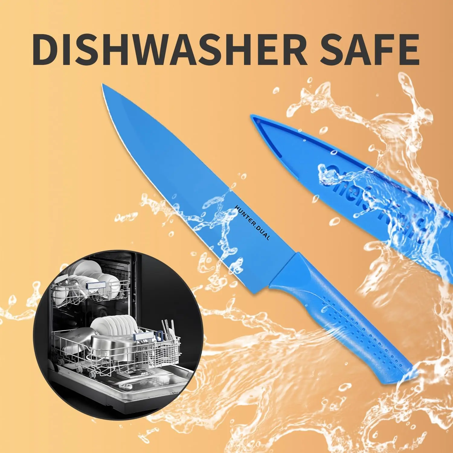 I absolutely love this 12-piece colorful kitchen knife set! Each knife is sharp, sturdy, and perfectly balanced, making meal prep a breeze. The variety of knives included—chef’s knife, bread knife, slicing knife, utility knife, paring knife, and more—covers all my cooking needs, from chopping vegetables to slicing meat and bread.