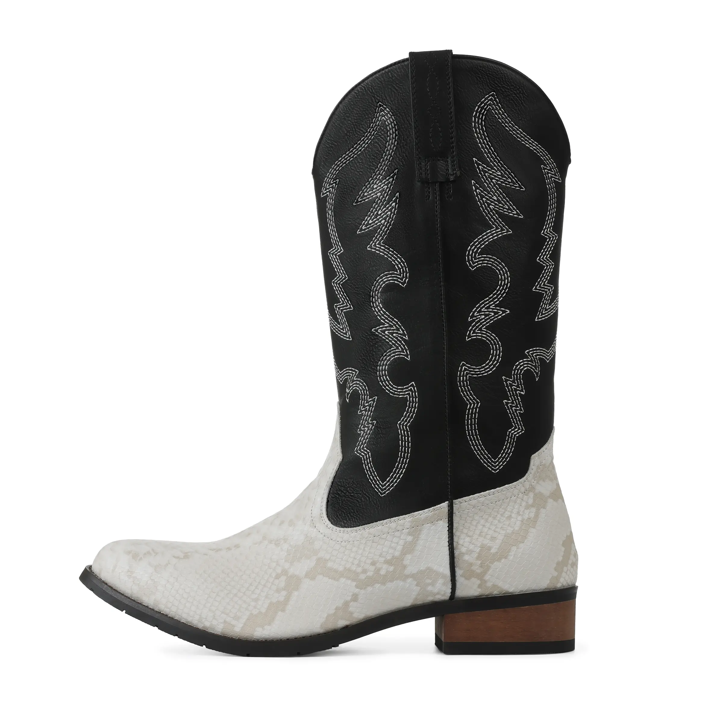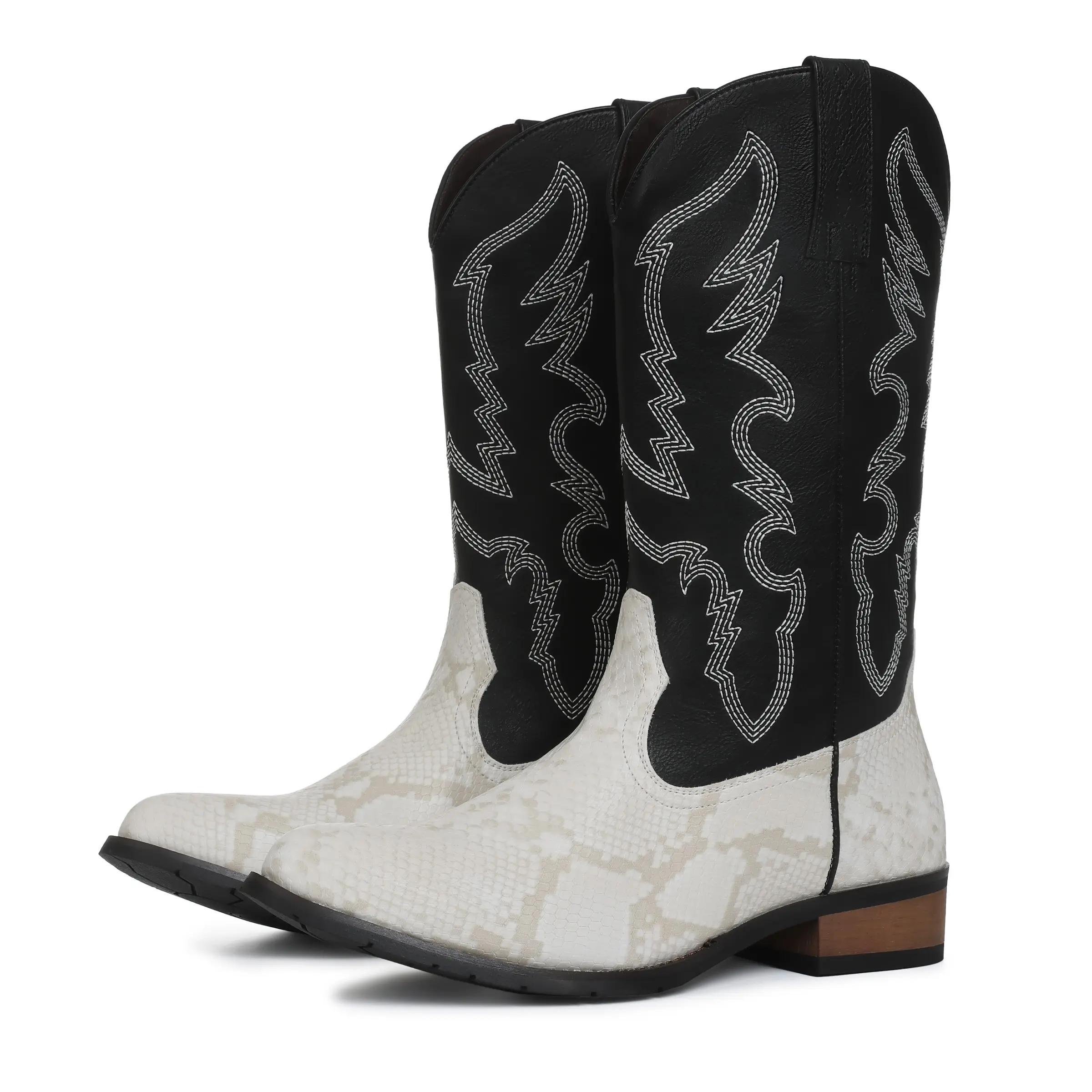 Style: Classic western cowboy boots with a sleek pull-on design and detailed handcrafted pattern, offering a rugged yet stylish look that suits both casual and workwear outfits.