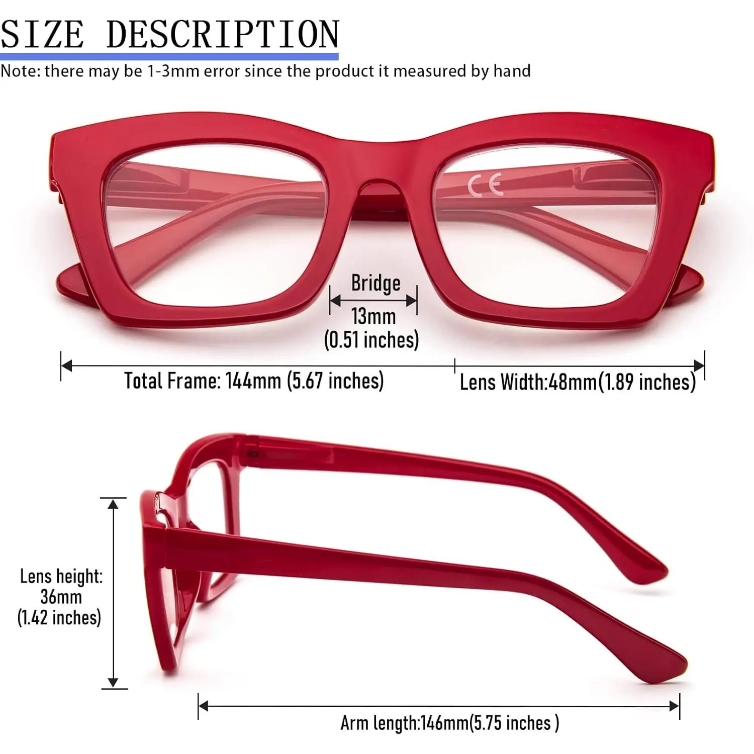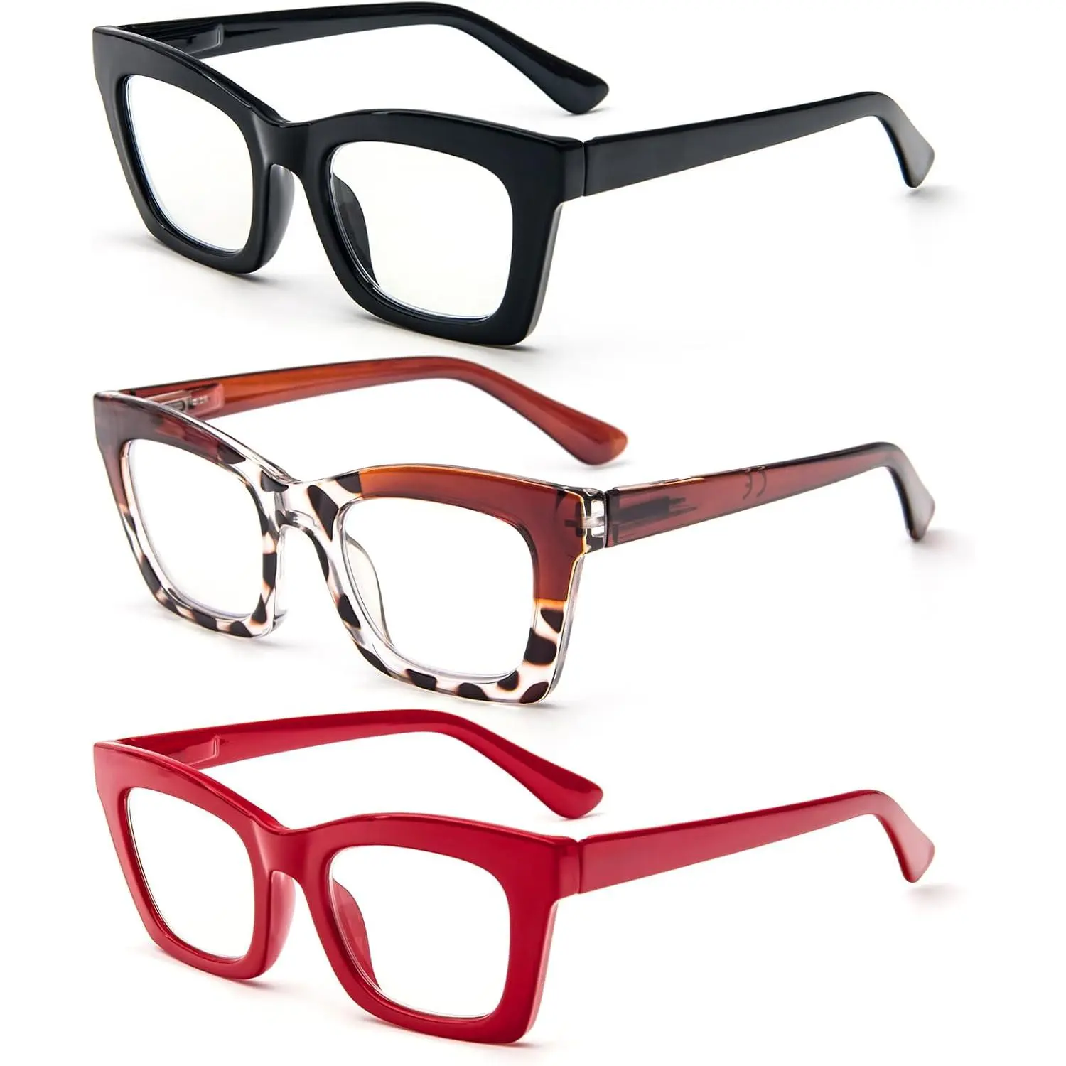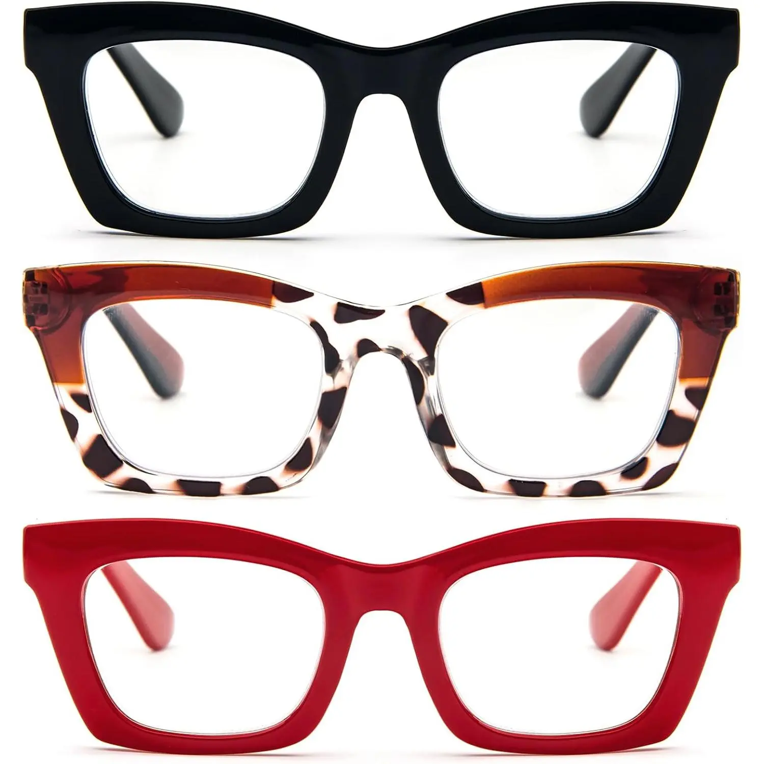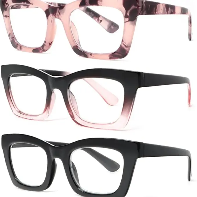 Lady's Stylish Reading Glasses: Beautifully crafted reading glasses for people who loves fashion. The Trendy design of the large and square rims is suitable for all face shapes. Whether you're walking down the street, work, or read, this design will make you more attractive.