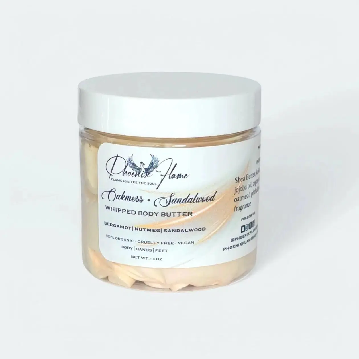 Shea Butter, Kokum Butter, Coconut Oil, Grapeseed Oil, Argan Oil, Jojoba Oil, Vitamin C, Vitamin E, Colloidal Oatmeal, Fragrance
