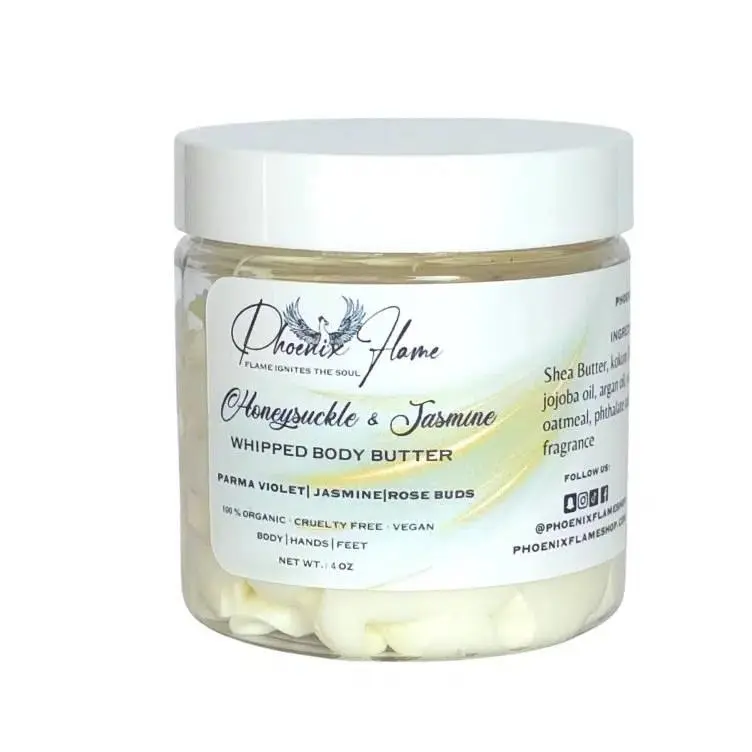 Pamper yourself with this rich and creamy formula that melts into your skin, providing deep moisture without feeling greasy. Treat yourself to a spa-like experience every time you apply this luscious body butter, and let the delightful aroma linger around you like a fragrant embrace. Transform your skincare routine into an indulgent ritual with our Honeysuckle Jasmine Whipped Body Butter