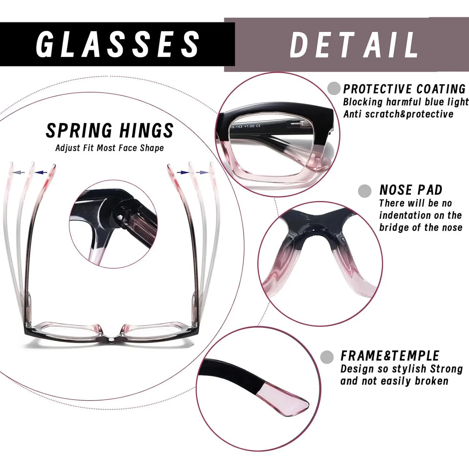 Blue light blocker and multifocal clear lens with UV400 protection, resisting 100% harmful blu-ray and alleviating discomfort from TV, PC, gaming, digital screens monitor; Reducing glare, fatigue, headaches, migraine and dry eye to help sleep better
