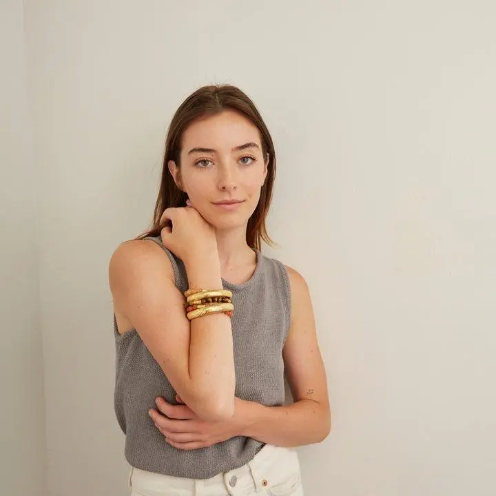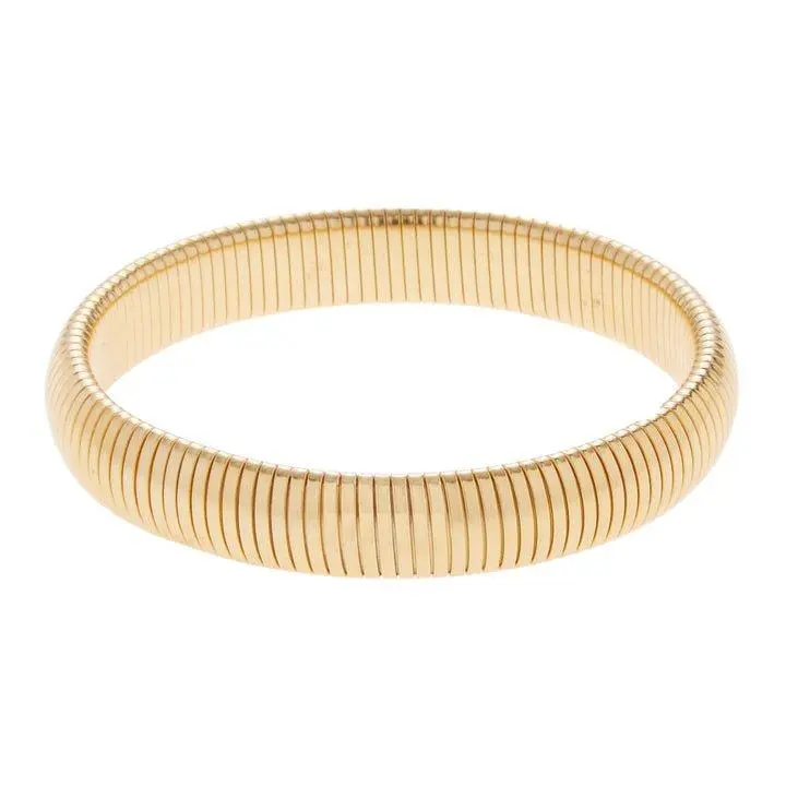 Cheers to the Brandy bangle from our Aperitivo Collection. This best-selling bracelet is the perfect stretchy cobra bracelet for wearing alone or mixing with your favorite concoction of jewelry. Width: 12 mm. Materials: 24K gold-plated brass. All Ben-Amun jewelry is handcrafted and made to order in NYC; please allow 7-14 days for production before the anticipated ship date.