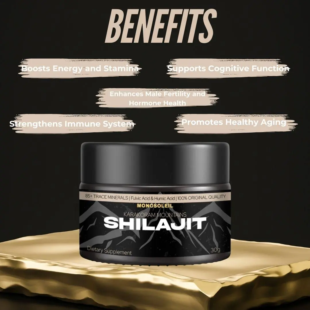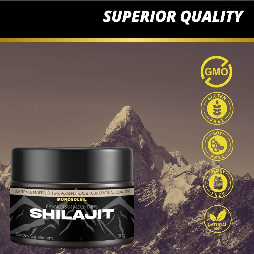MONOSOLEIL Karakoram Shilajit Power Resin is a pure, high-quality Shilajit resin harvested from the Himalayan mountains (India/Nepal). This sticky, viscous paste is 100% pure and comes in dark brown to black color. Properly stored, it has a shelf life of 2-3 years.
