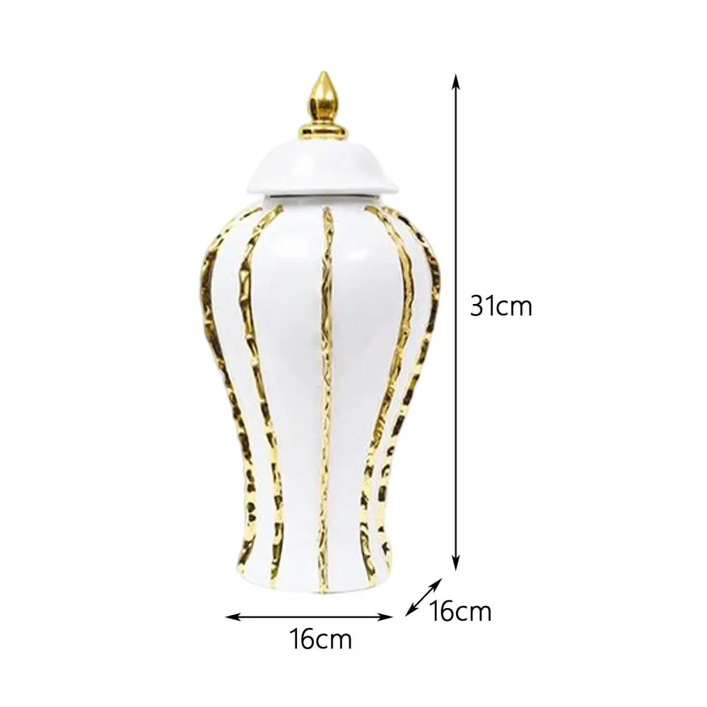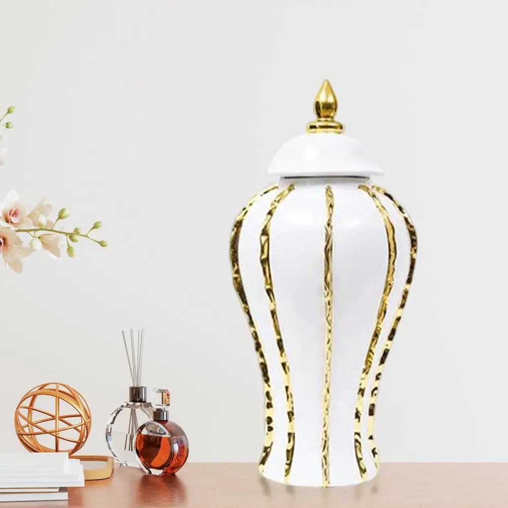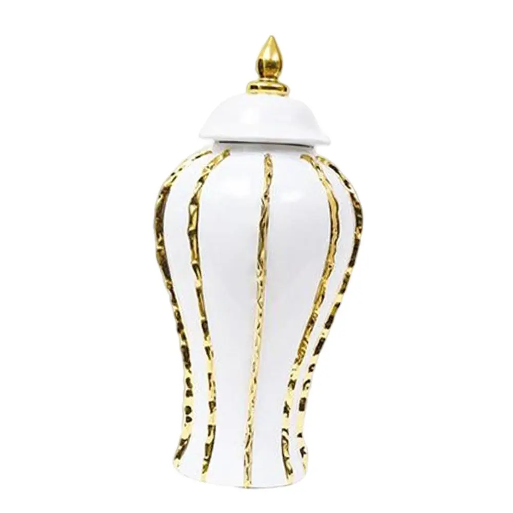 Ceramic Ginger Jar: ceramic material, light and firm, aureate strips , beautifully crafted artwork for home , living room decorations .